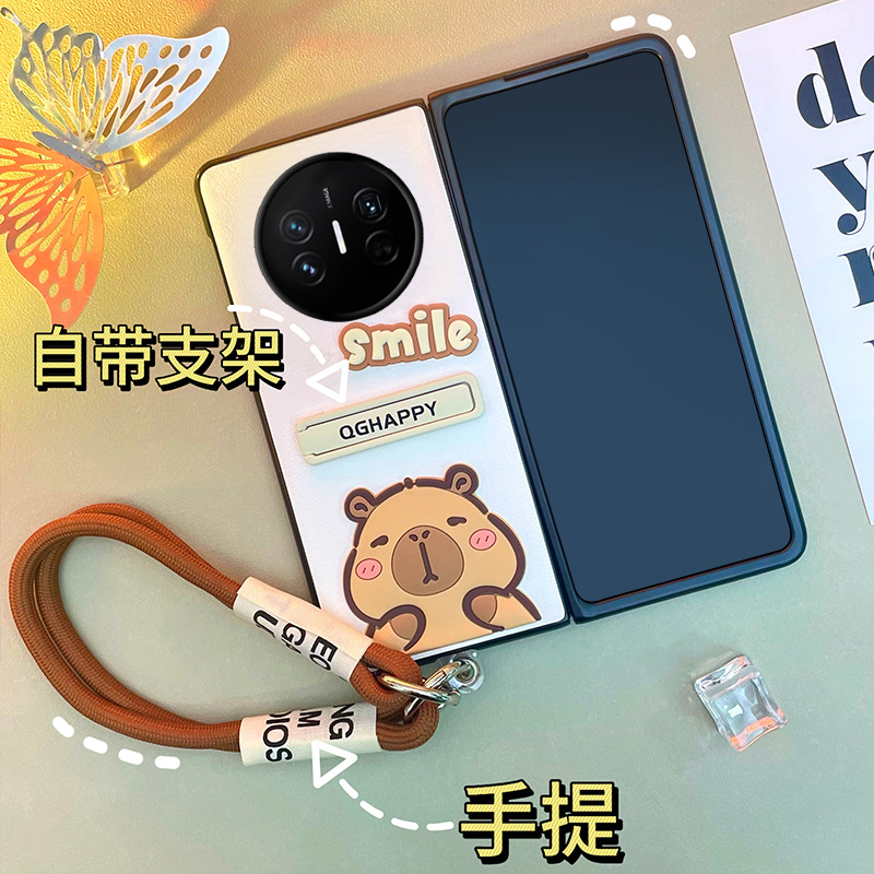 华为MateX6手机壳手提卡皮巴拉小熊支架卡通可爱ins风轻奢女