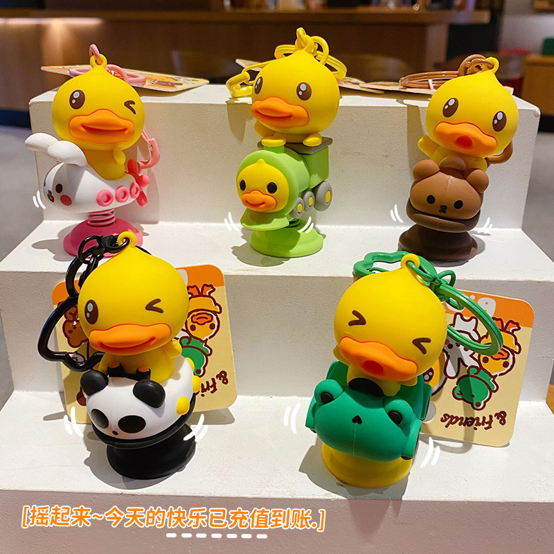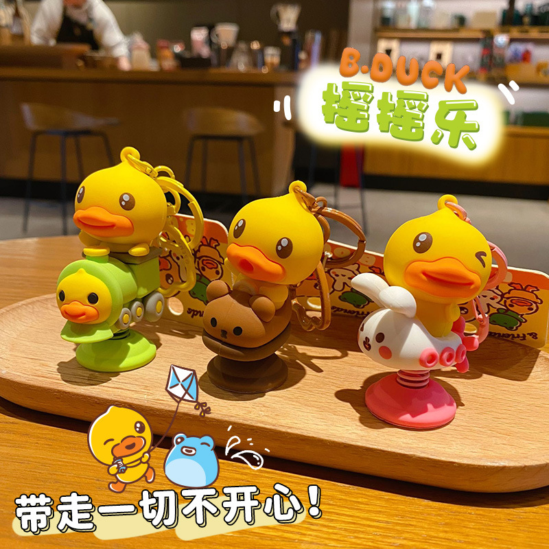 正版汽车钥匙扣解压B.Duck小黄鸭摇摇乐车用挂饰卡通公仔车载挂件