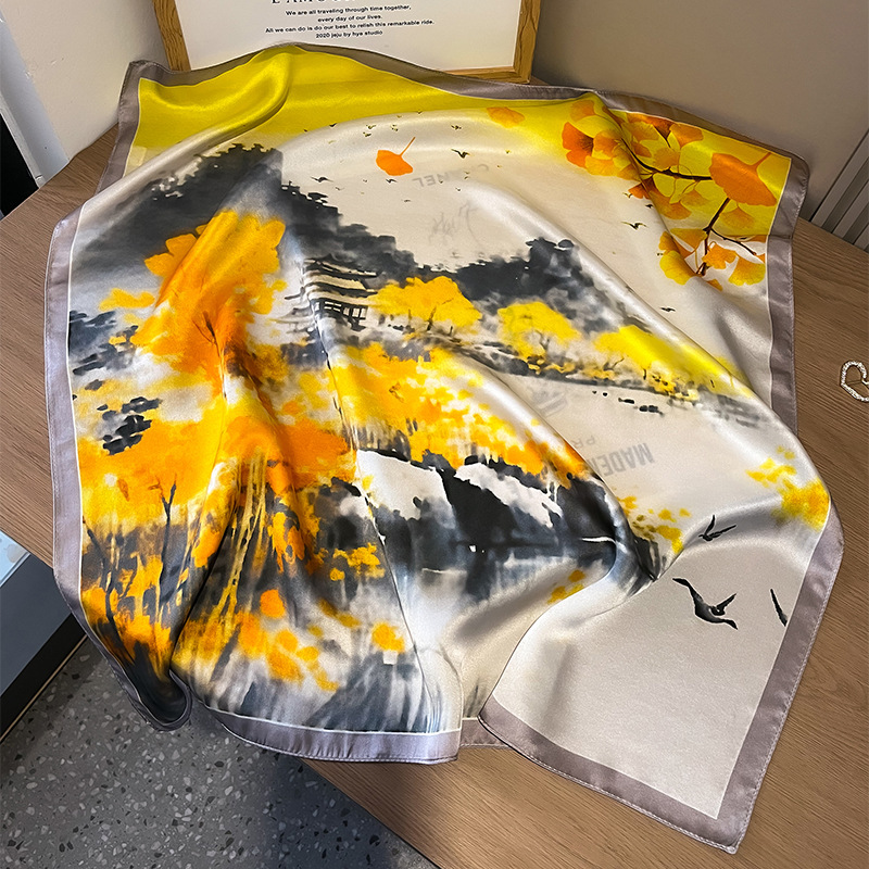 春季新款70真丝丝巾女优雅时尚桑蚕丝70方巾百搭轻奢素绉缎丝巾