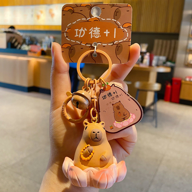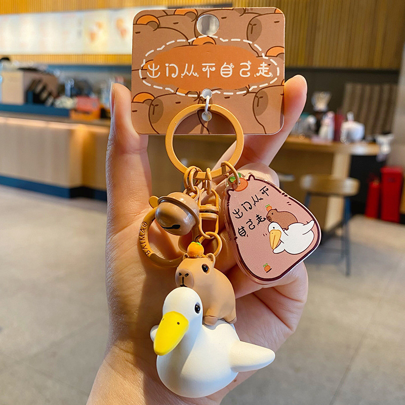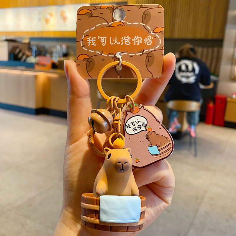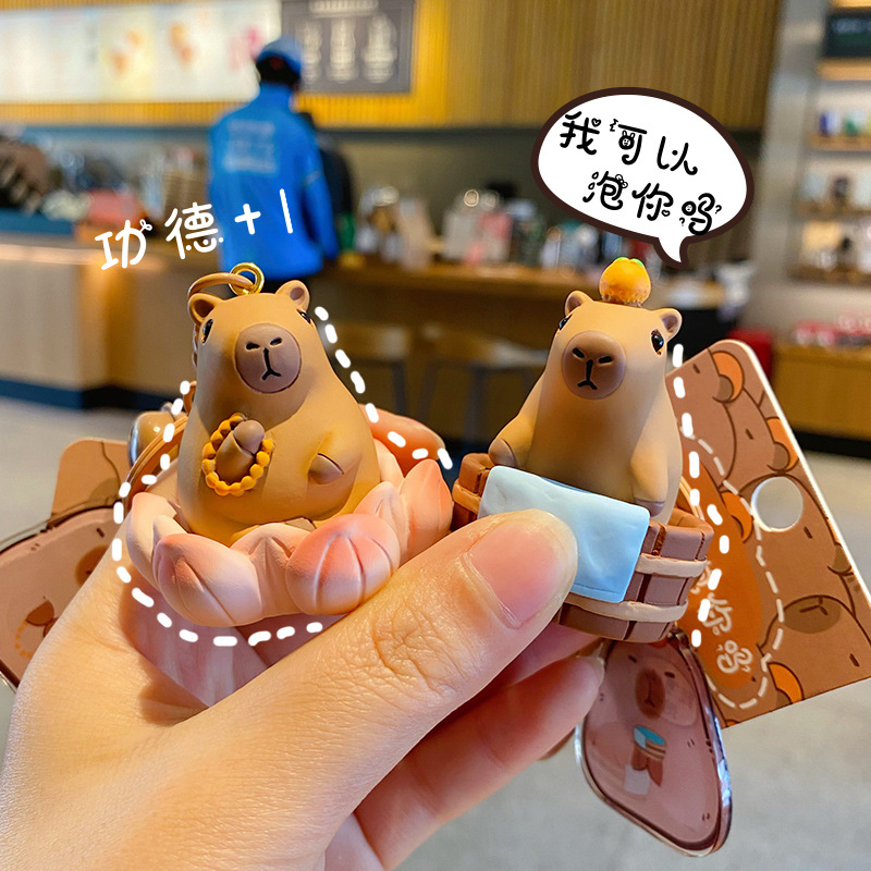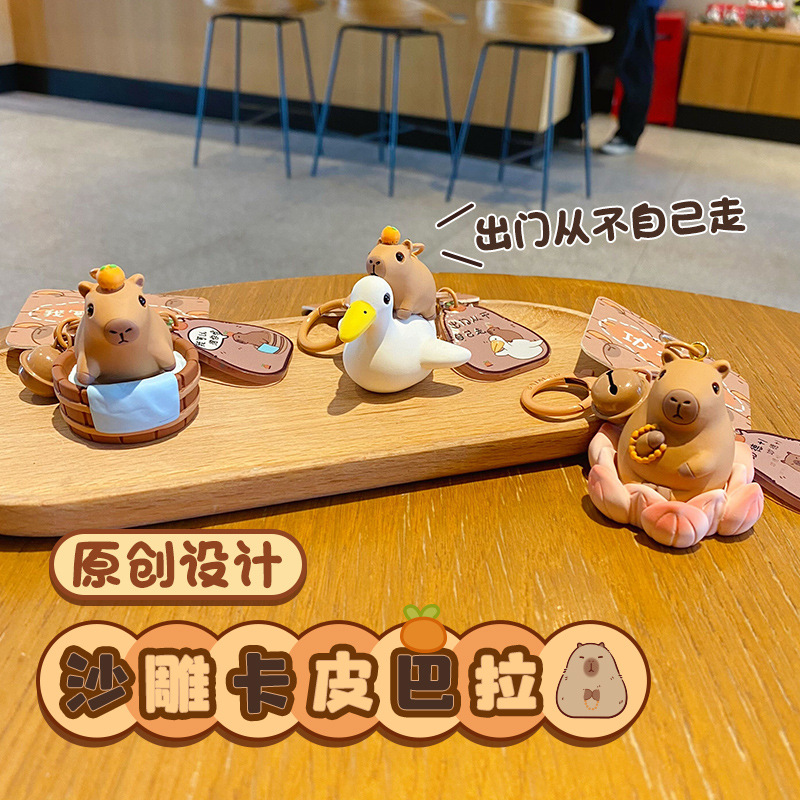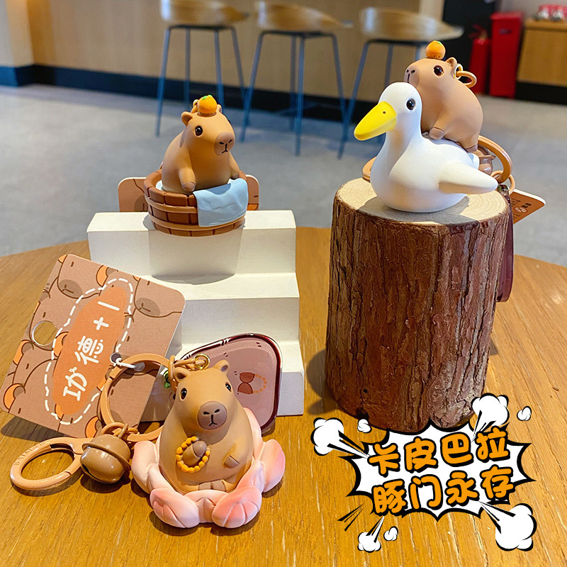 汽车挂件 创意网红卡皮巴拉钥匙扣 可爱呆萌水豚公仔钥匙链车挂件