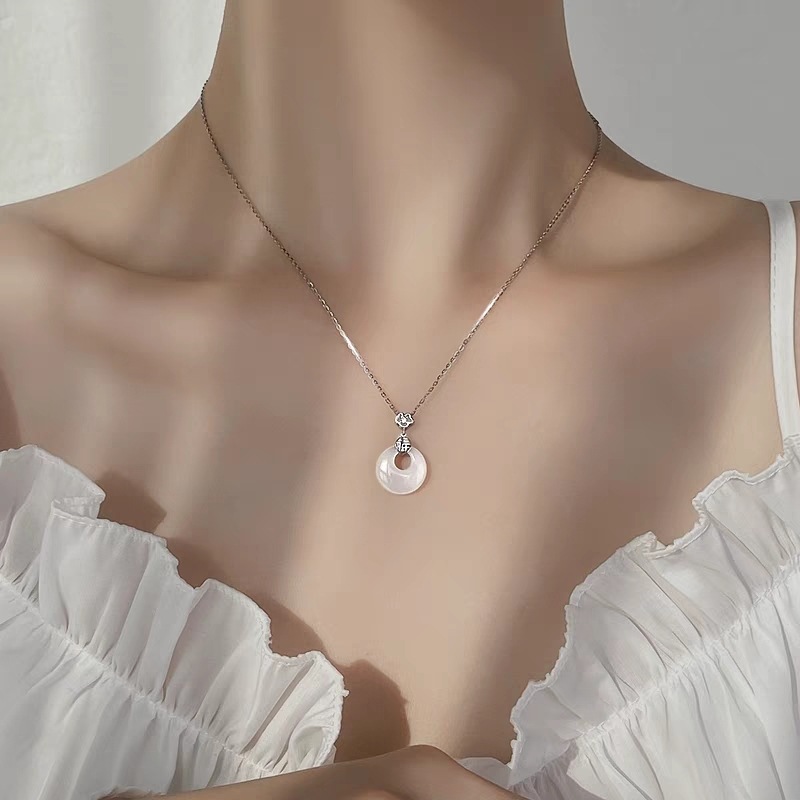 s999纯银福气平安扣玉髓项链女民族风宫廷锁骨链轻奢小众设计项链