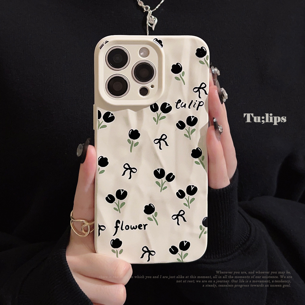 冷淡风郁金香适用苹果15ProMax手机壳13褶皱iPhone12全包14文艺11
