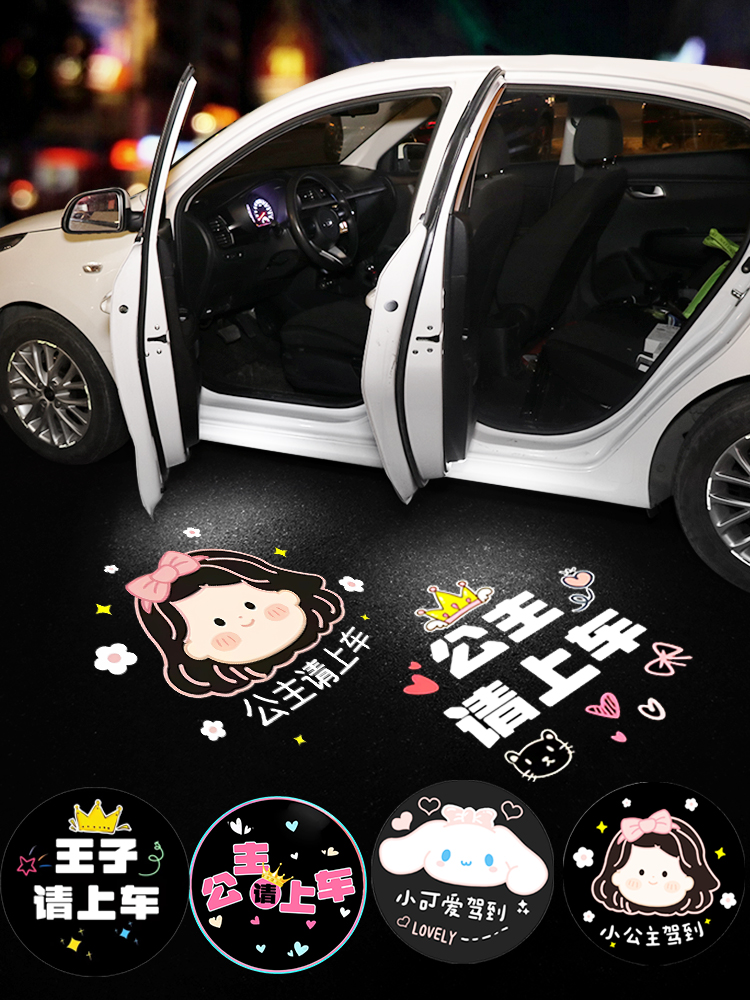 公主请上车迎宾灯车门灯感应汽车载投影仪电动车氛围装饰用品