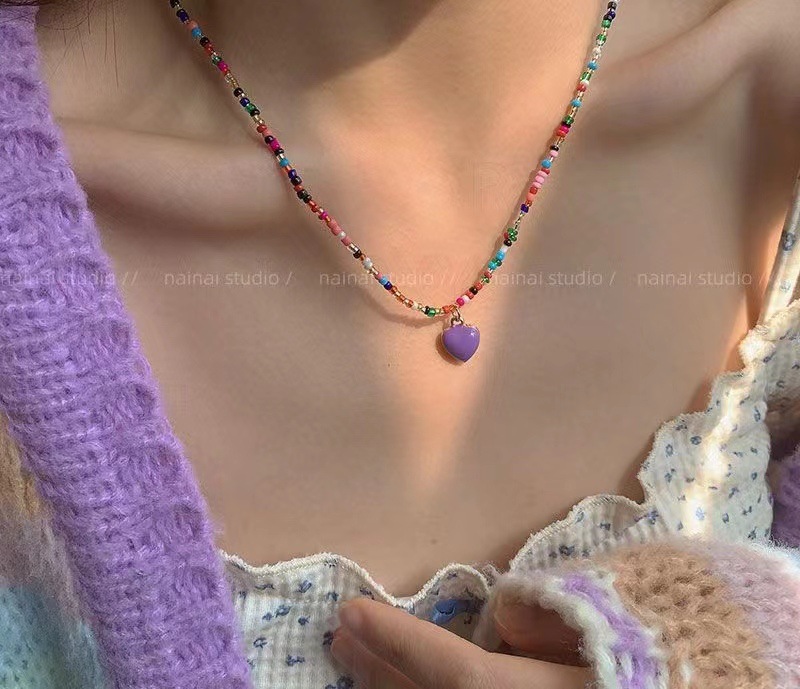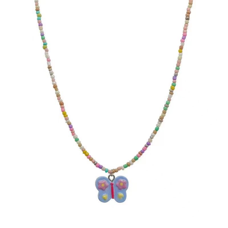 新款蝴蝶项链韩国辣妹彩绘彩色手工串珠锁骨链昭和风原宿可爱配饰