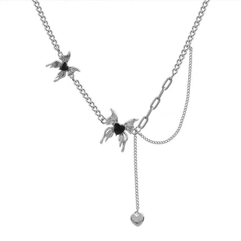 液体蝴蝶流苏项链新款高级设计感轻奢小众毛衣链女春夏