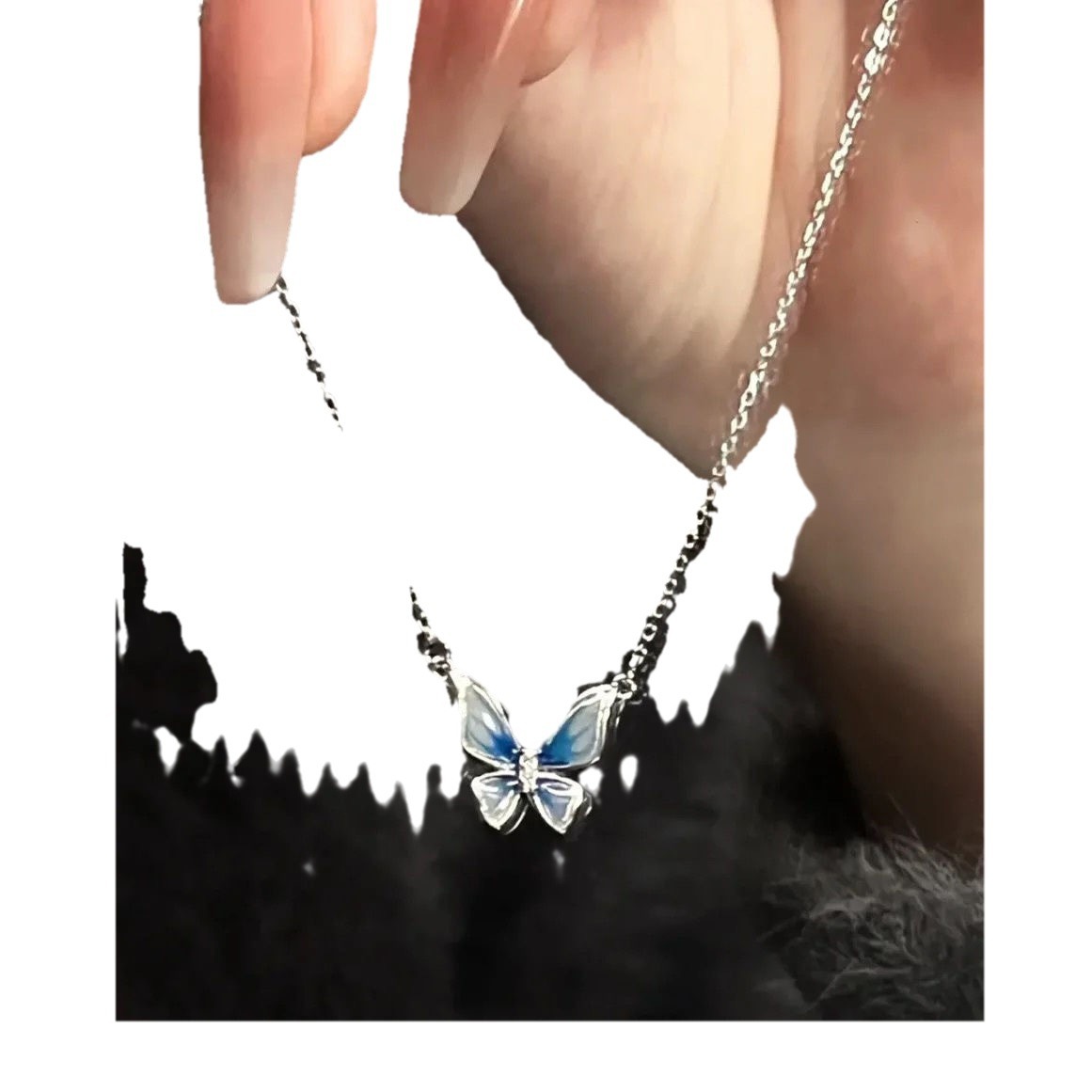 庄周梦蝶|法式珐琅蓝色蝴蝶项链女高级设计感温柔气质小众锁骨链