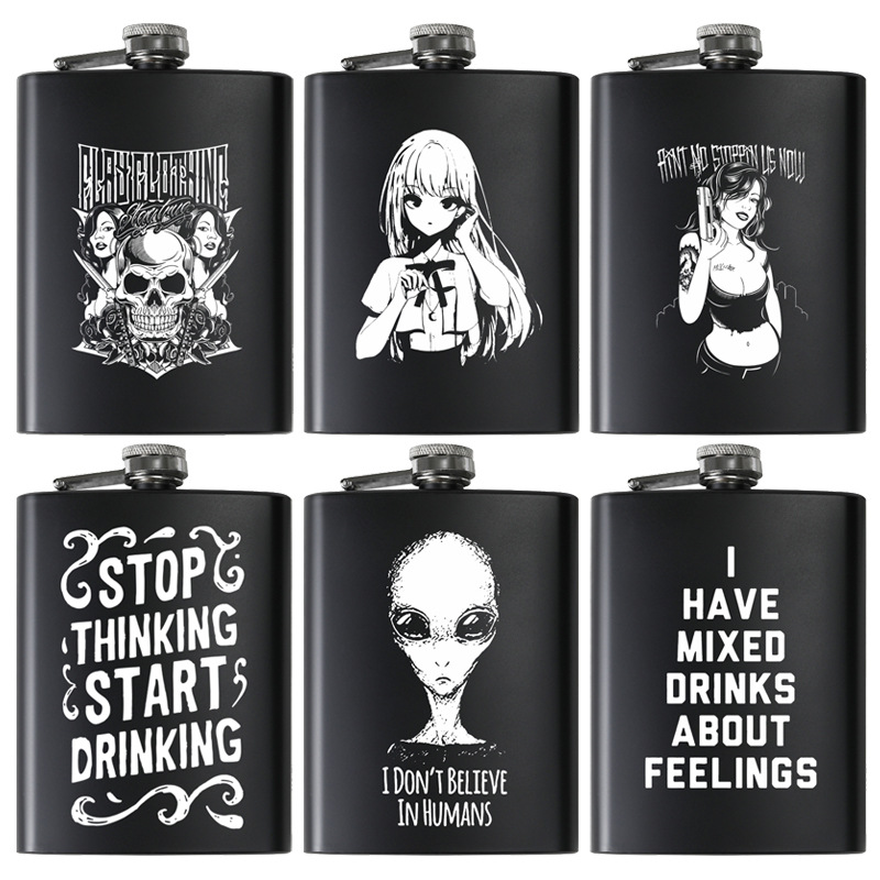 白酒不锈钢8盎司黑色酒壶创意户外便携随身