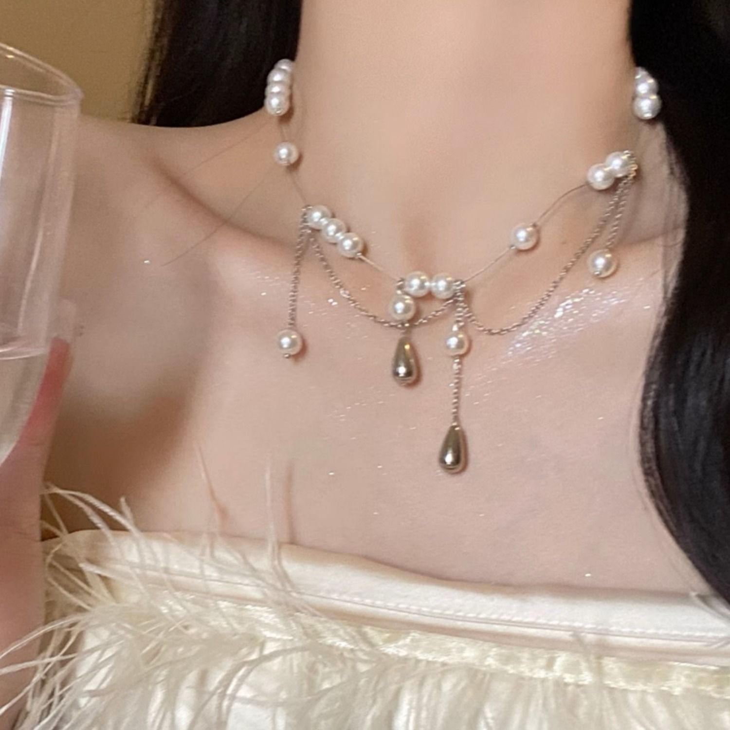 珍珠人鱼流苏珍珠项链项链设计女轻奢小众锁骨高级新款气质配饰潮