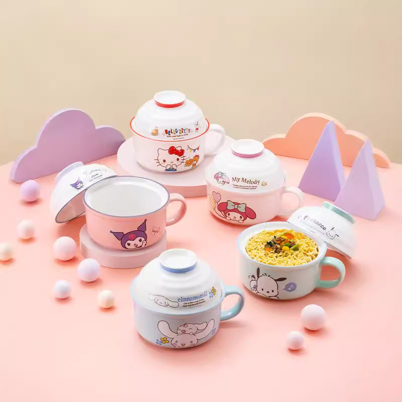 三丽鸥陶瓷泡面碗可爱卡通餐具学生宿舍用带盖碗
