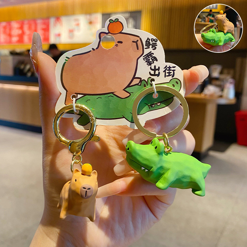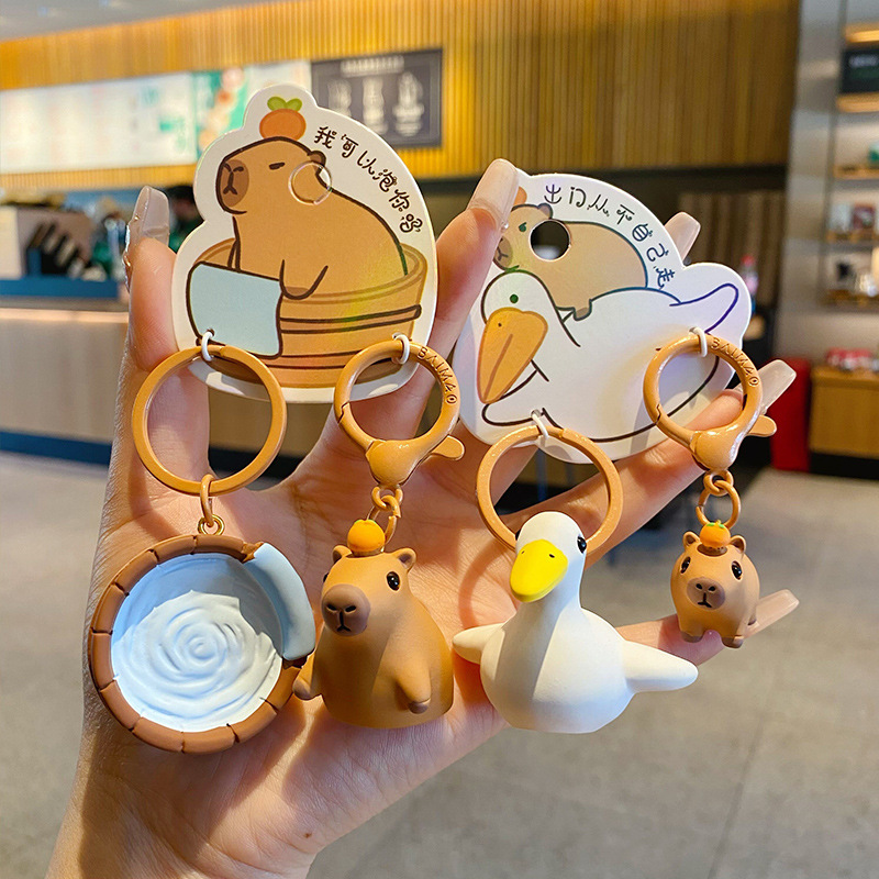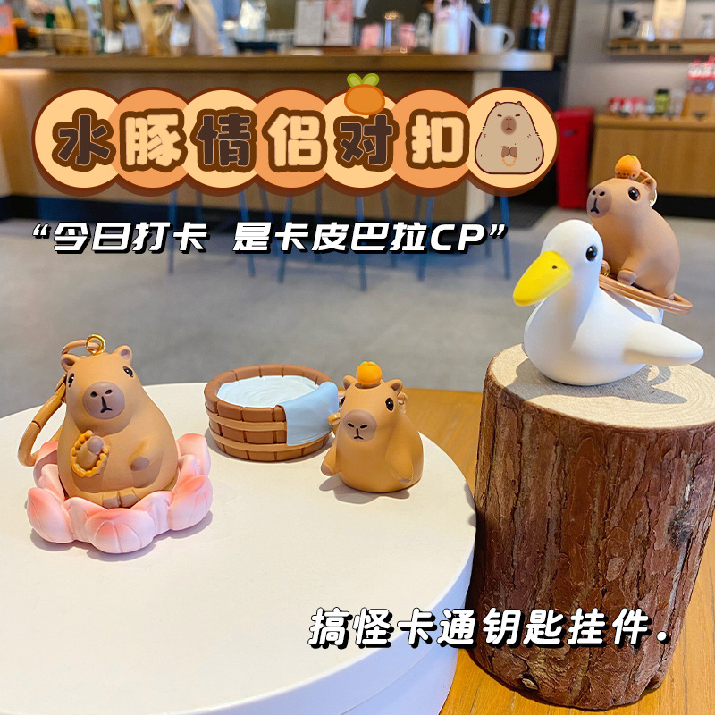 汽车挂件创意搞怪水豚情侣对扣卡皮巴拉公仔玩偶趣味钥匙链车挂件