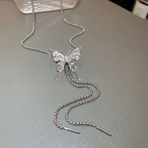 高级感可抽拉蝴蝶项链女个性轻奢百搭锁骨链时尚气质甜酷辣妹饰品