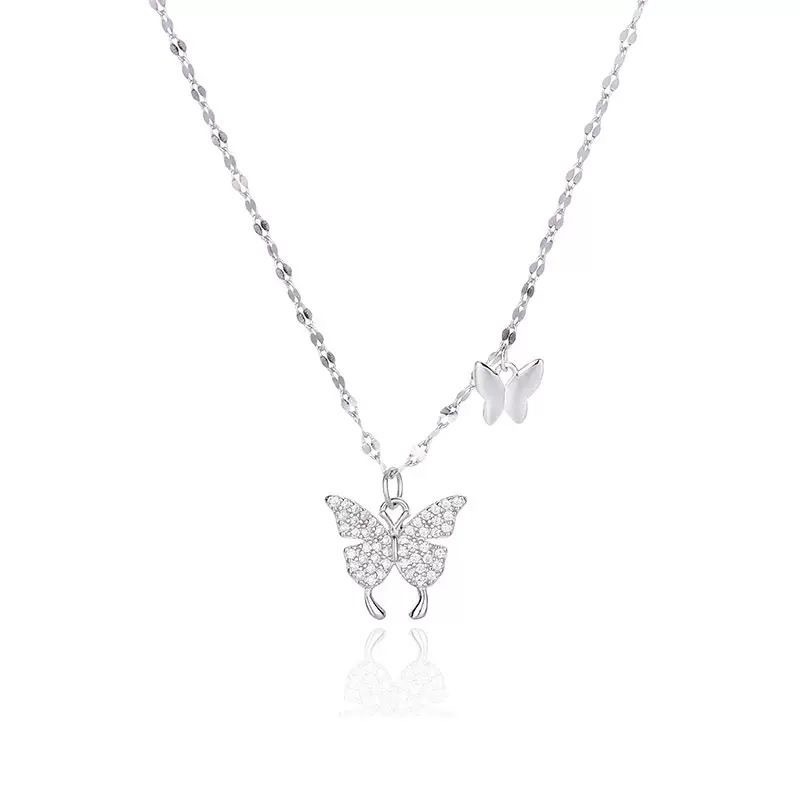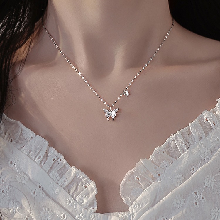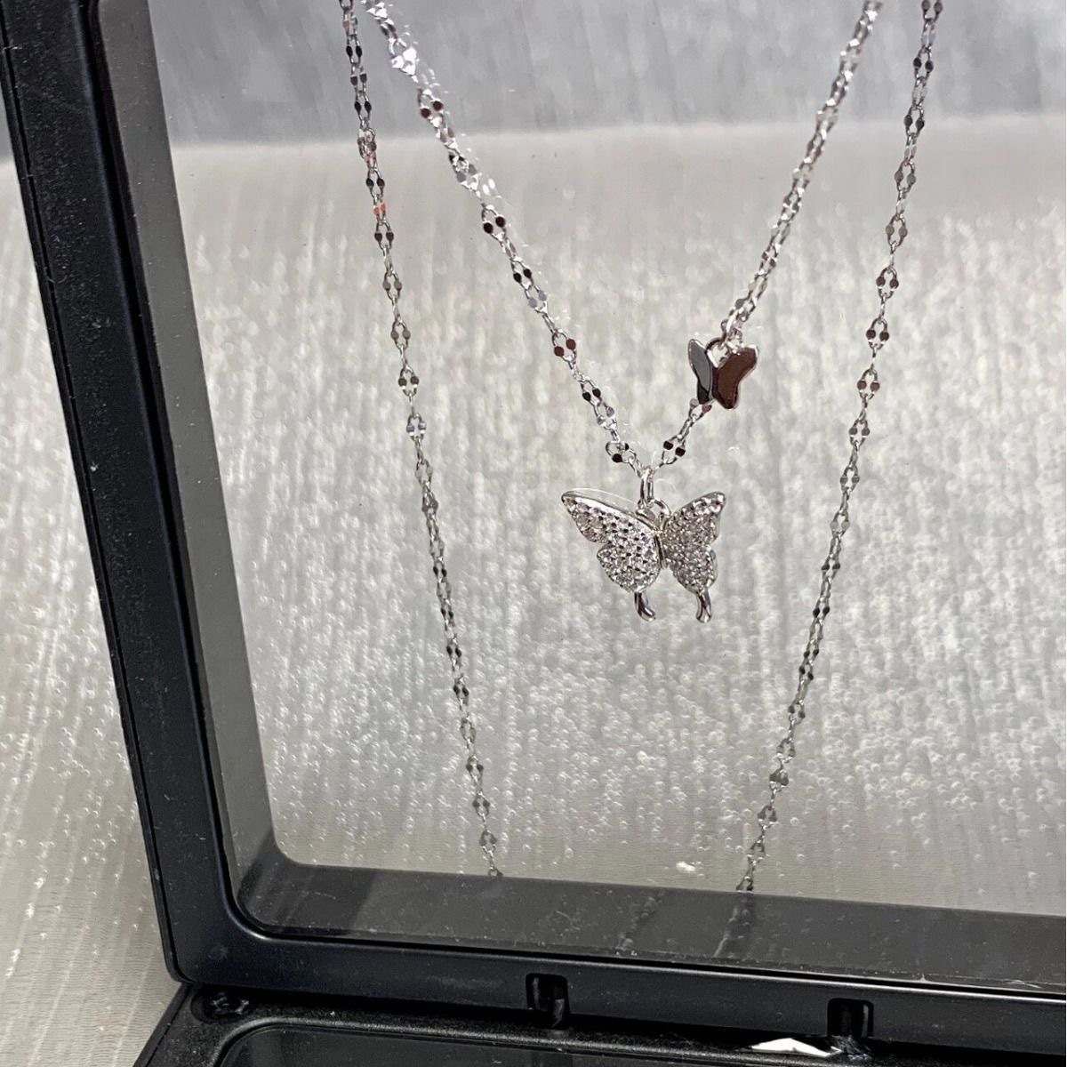 闪闪蝴蝶项链女夏ins轻奢小众设计感锁骨链满钻新款爆款