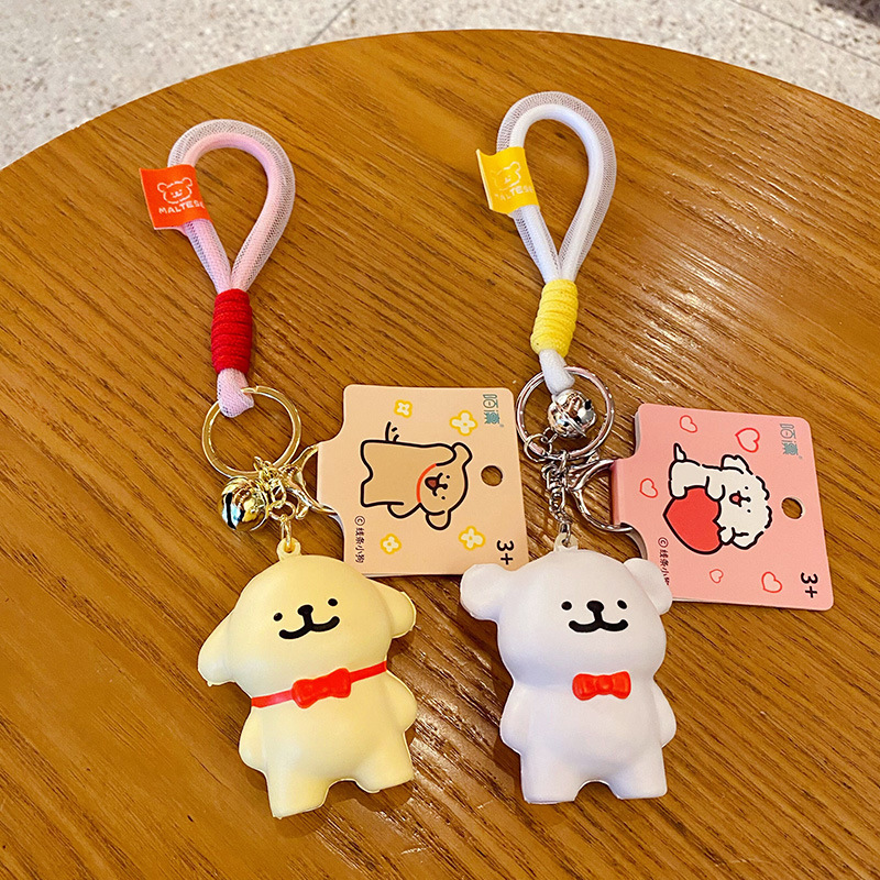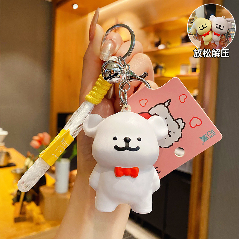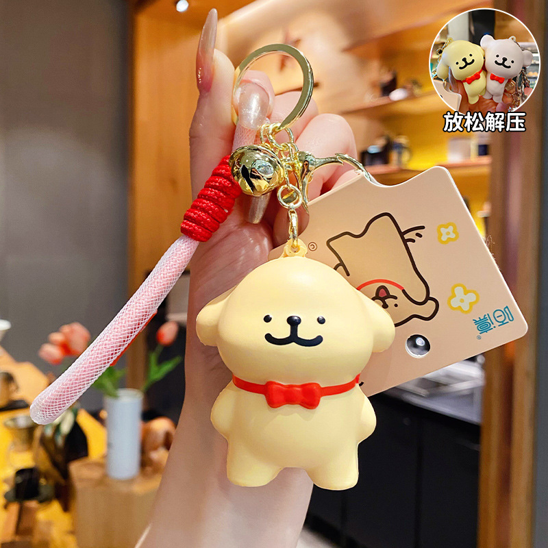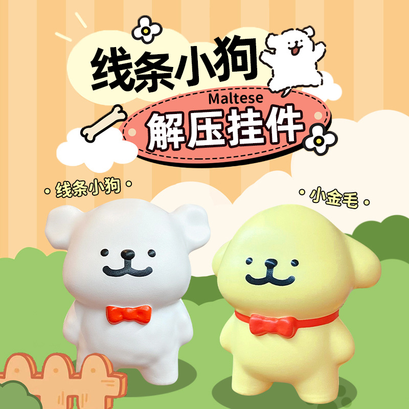 慢回弹线条小狗汽车钥匙扣捏捏乐解压车用钥匙链可爱治愈小狗车挂