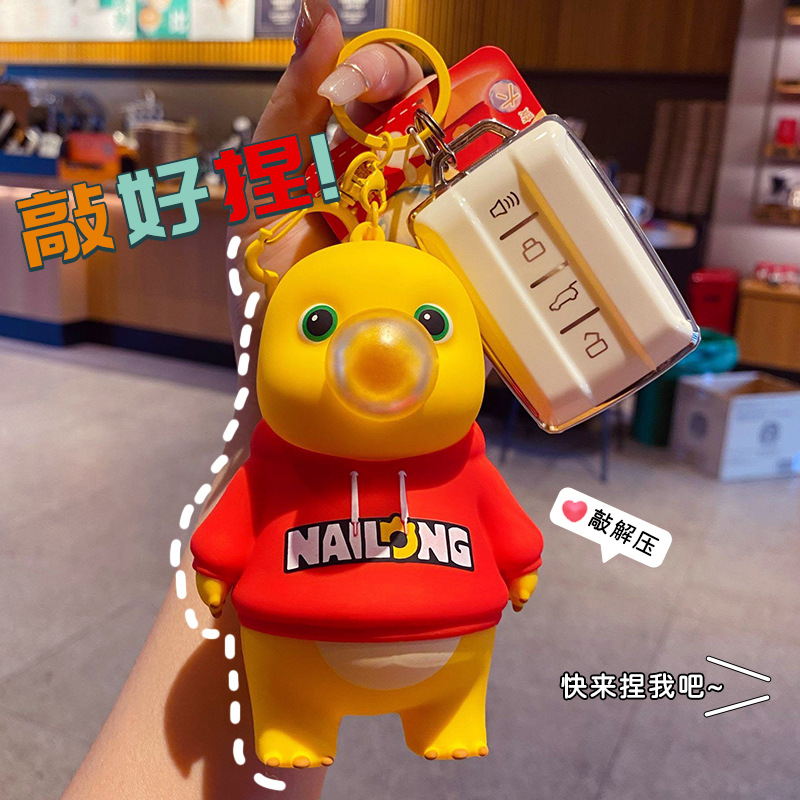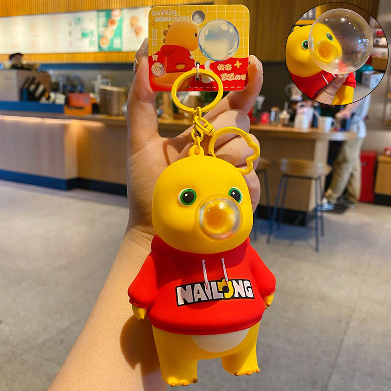 正版奶龙大号吐泡泡解压钥匙扣-红色国潮款
