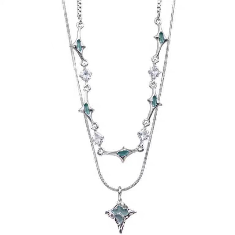 双层蓝色四芒星锆石项链女夏季小众设计感配饰时尚气质锁骨链