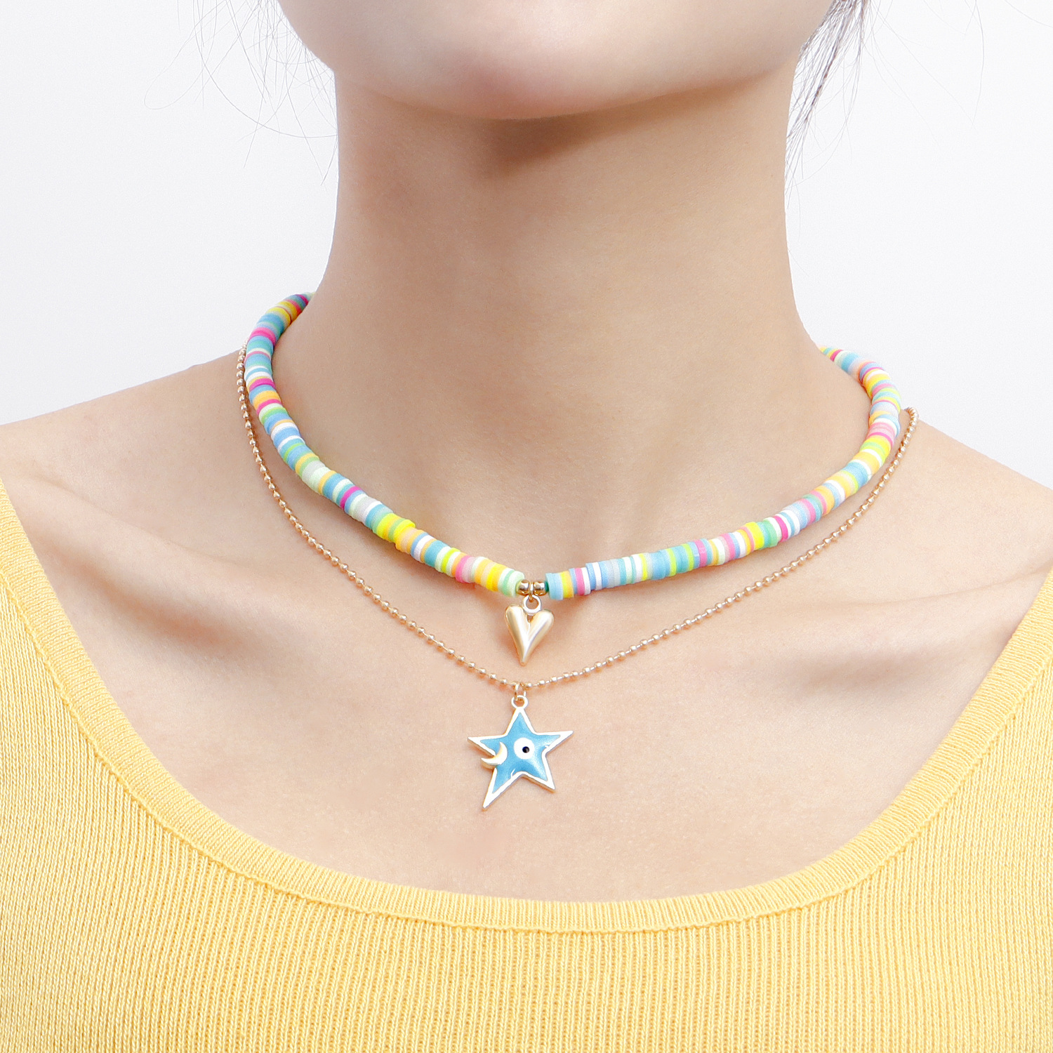 波西米亚彩色软陶恶魔之眼异形五角星爱心项链女