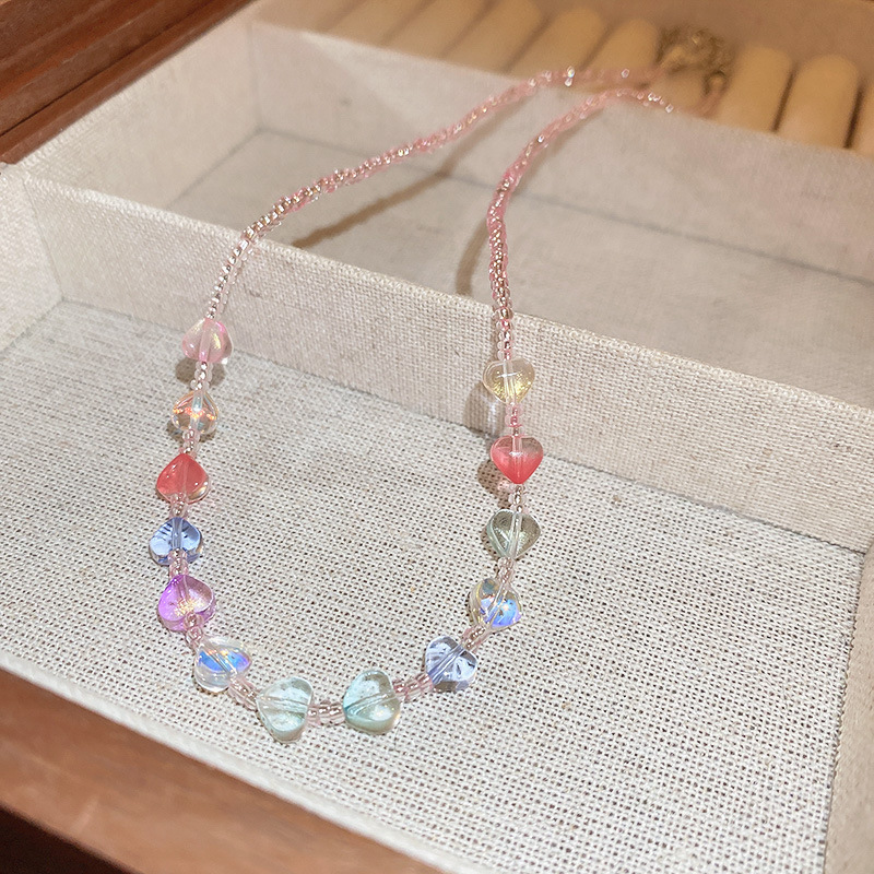 非金属玻璃项链 多巴胺彩色爱心串珠项链女辣妹甜酷风锁骨链颈链