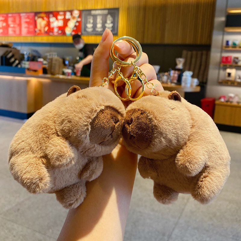 汽车挂件网红卡皮巴拉公仔钥匙扣可爱毛绒水豚玩具钥匙链车用挂饰