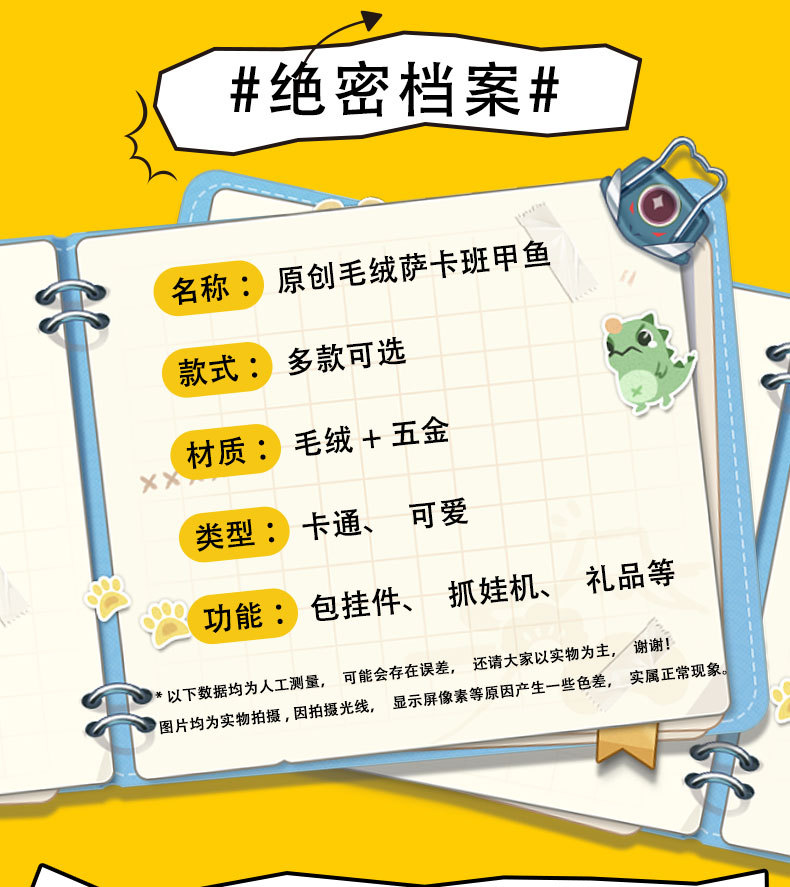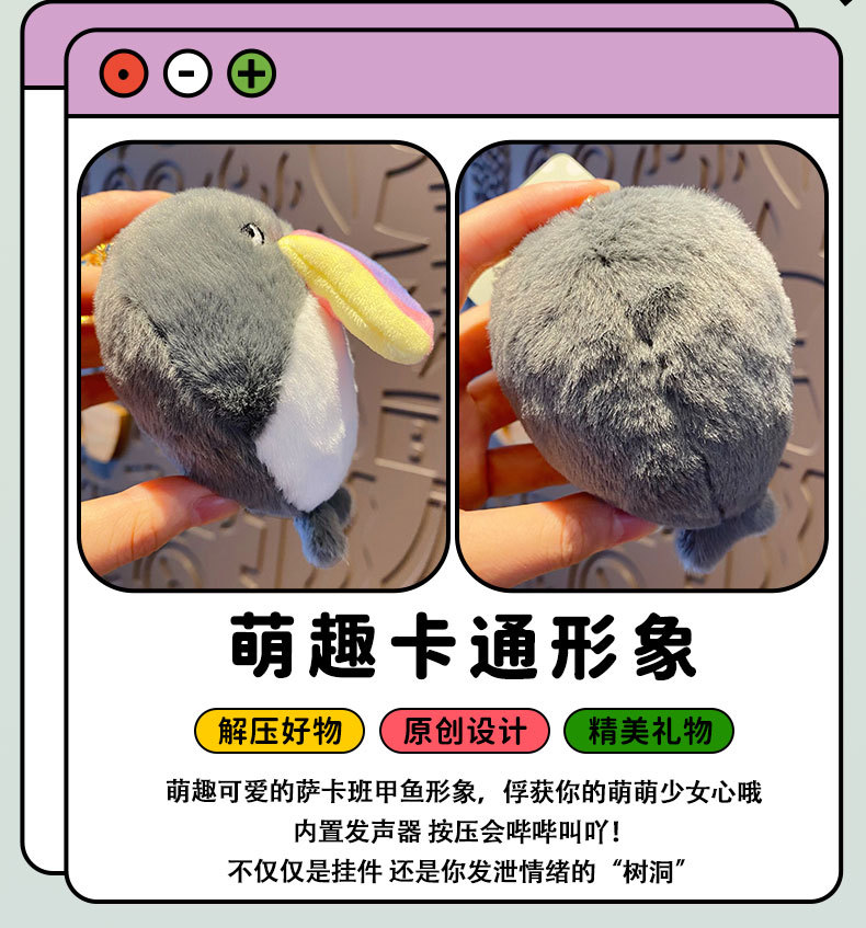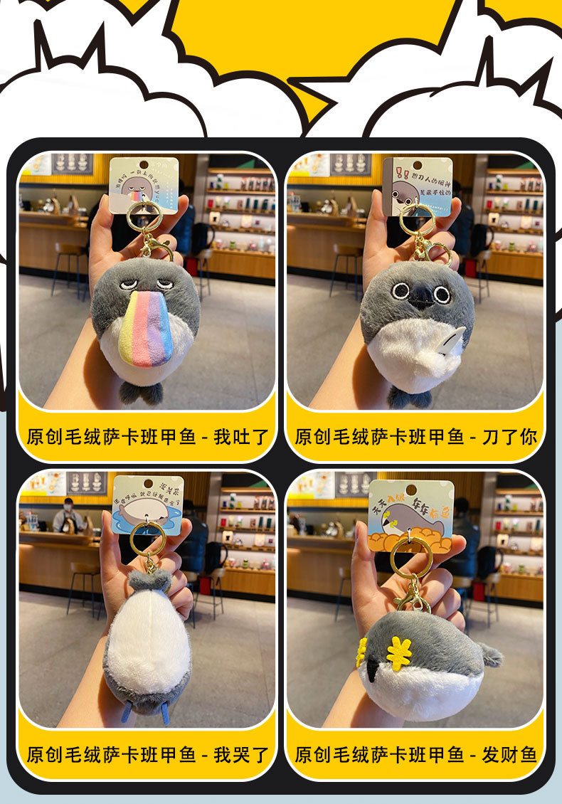 汽车钥匙扣原创毛绒萨卡班甲鱼钥匙链挂饰卡通玩偶毛绒公仔包挂件