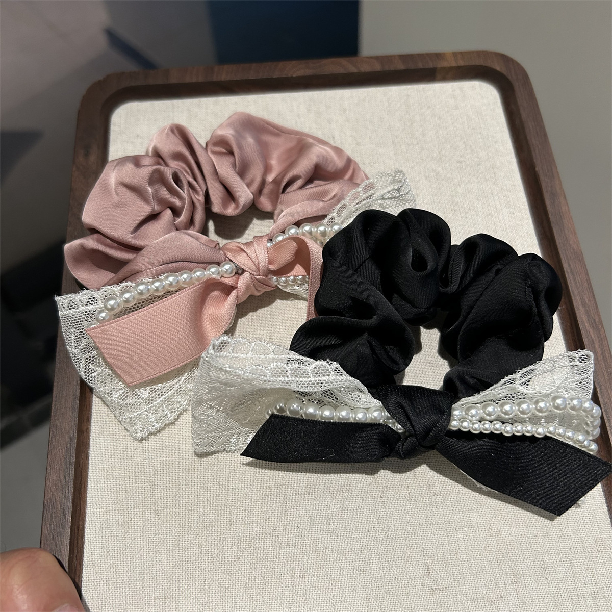 韩系新款微醺甜妹珍珠蝴蝶结发圈网红新款扎马尾头绳发饰女款