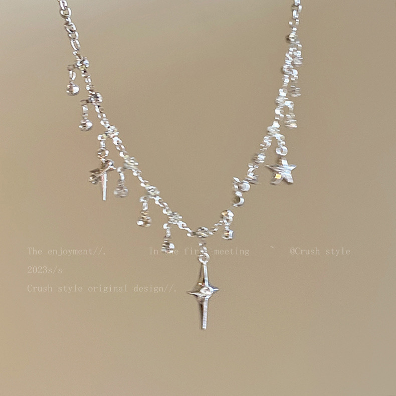 新款潮流十字誓约之星项链女四芒星闪钻氛围感水滴锁骨链甜酷颈链