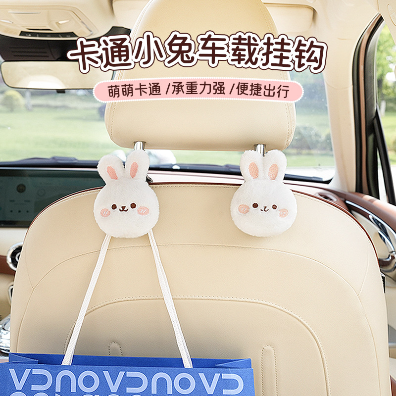 卡通熊兔车载挂钩 实用多功能强承重车内挂勾 装饰车用座椅背挂勾