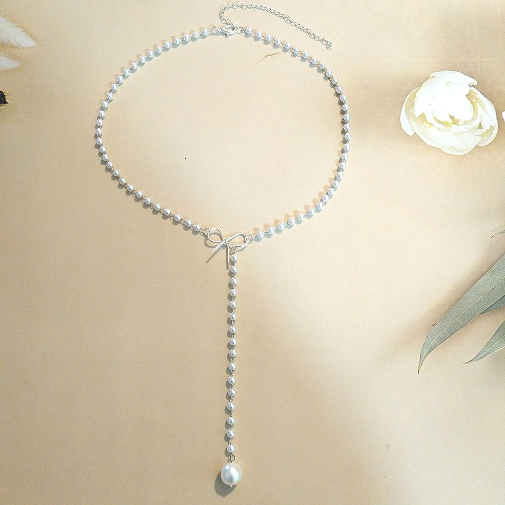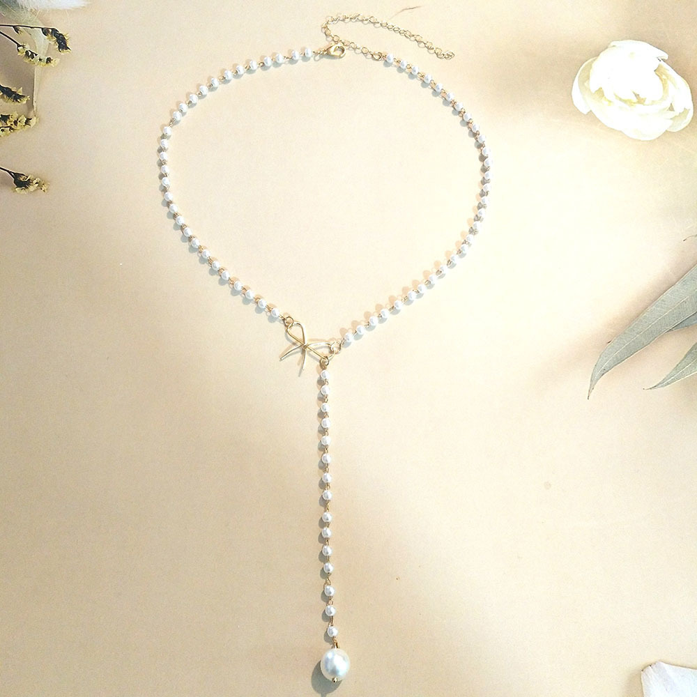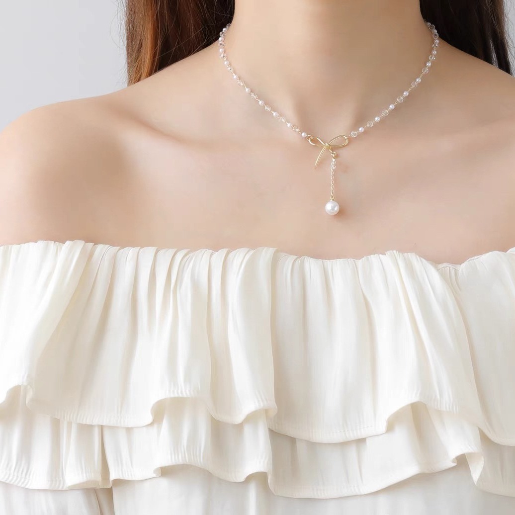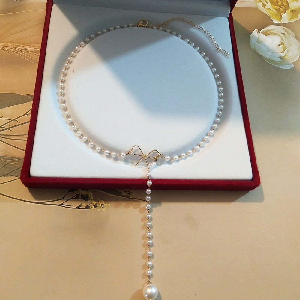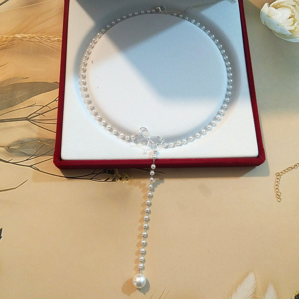 超仙珍珠流苏锁骨链新款时尚合金蝴蝶结珍珠流苏吊坠项链气质