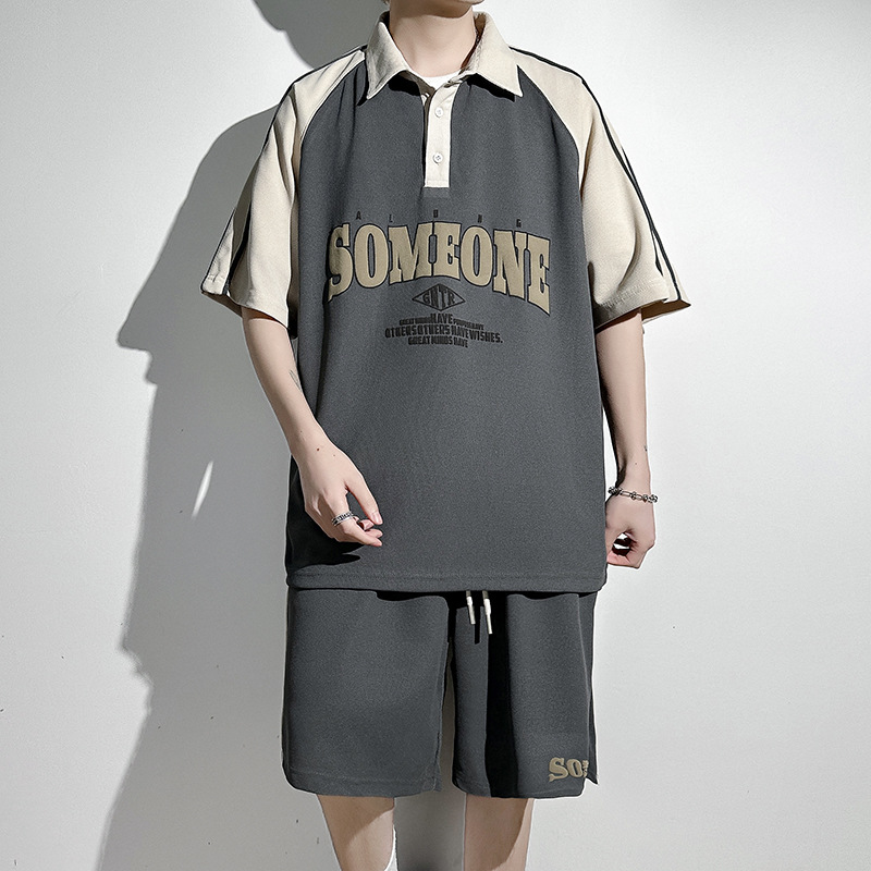 青少年男孩夏季涤纶潮短袖T恤初高中学生帅气潮流POLO衫夏装一套