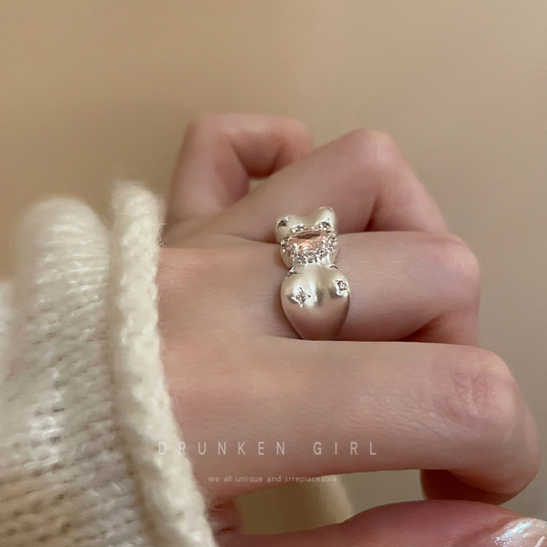 新款蝴蝶戒指女个性时尚简约百搭食指哑光甜美开口可调节指环