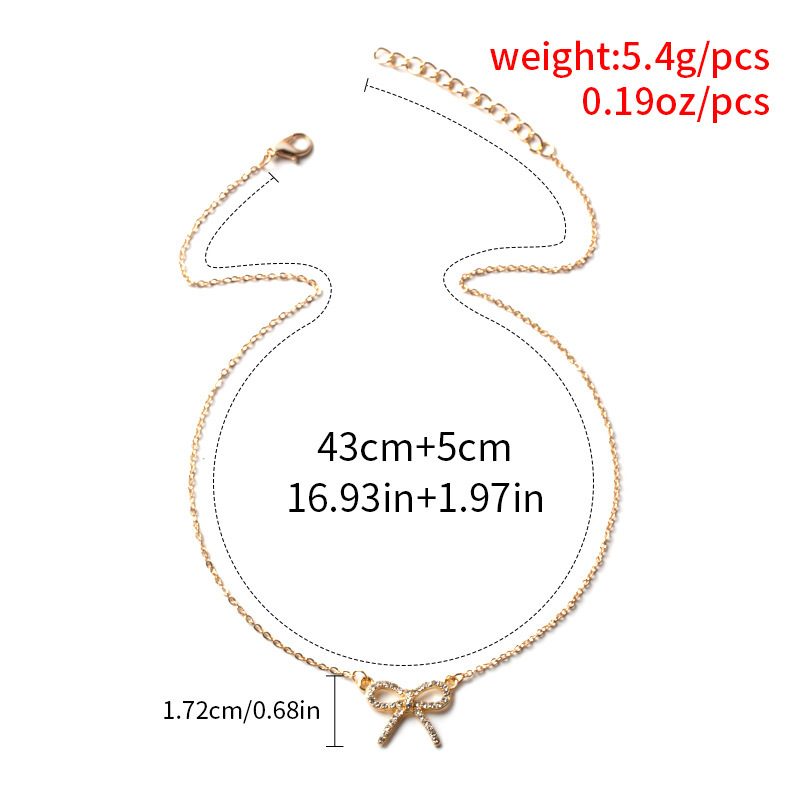 欧美跨境电商外贸饰品时尚蝴蝶结吊坠小众镶钻合金项链毛衣链女