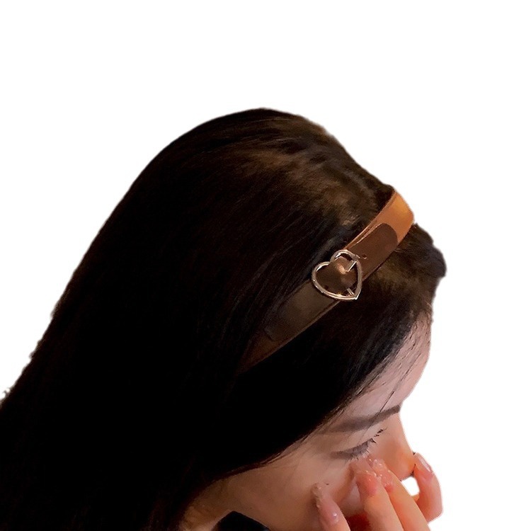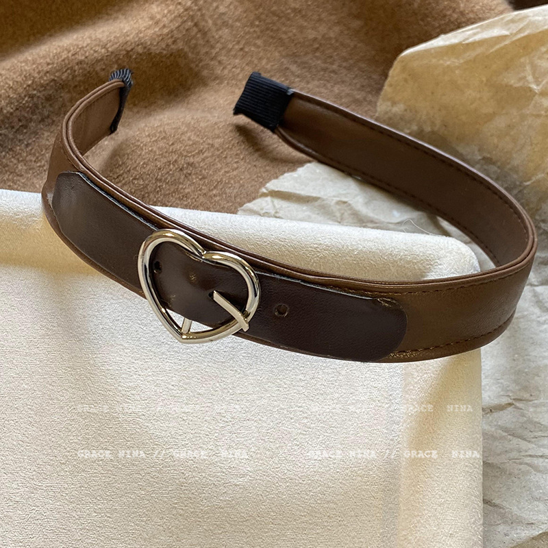 美拉德咖色皮带扣爱心发箍女新款高颅顶百搭头箍洗脸防滑发饰