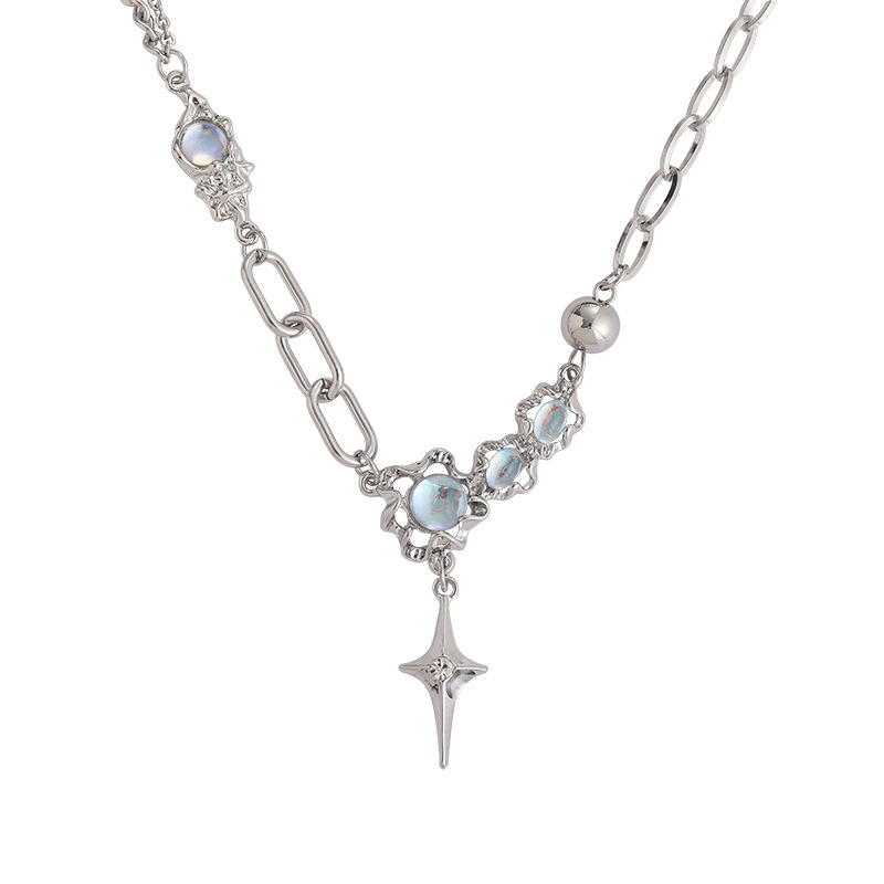 月光石芒星项链女ins潮小众设计高级感百搭毛衣链甜酷辣妹锁骨链