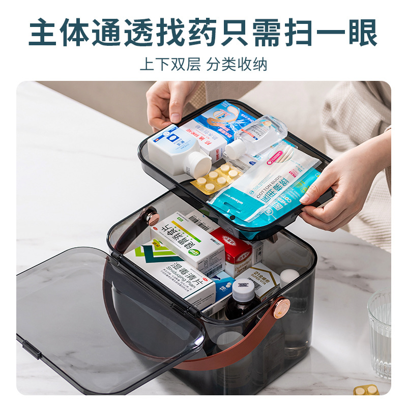 自主设计 透明轻奢家庭医药箱 双层大容量 手提多功能药箱