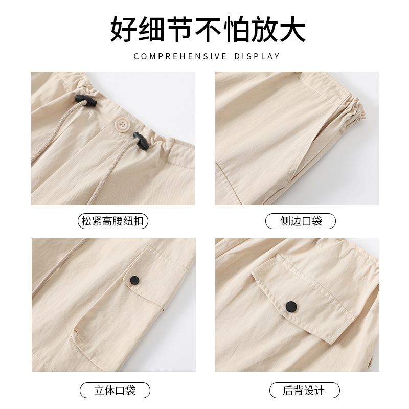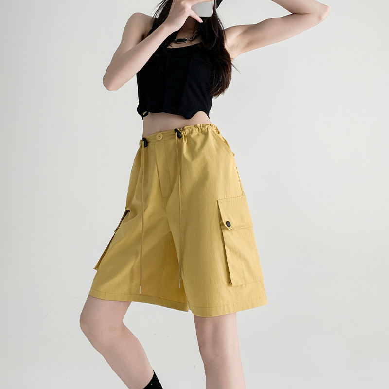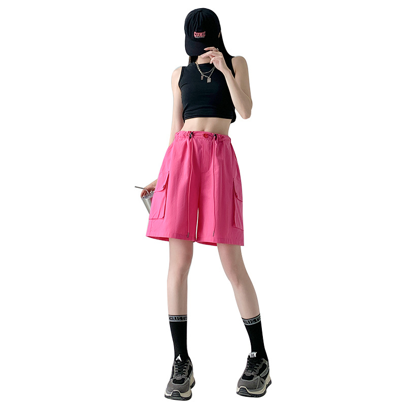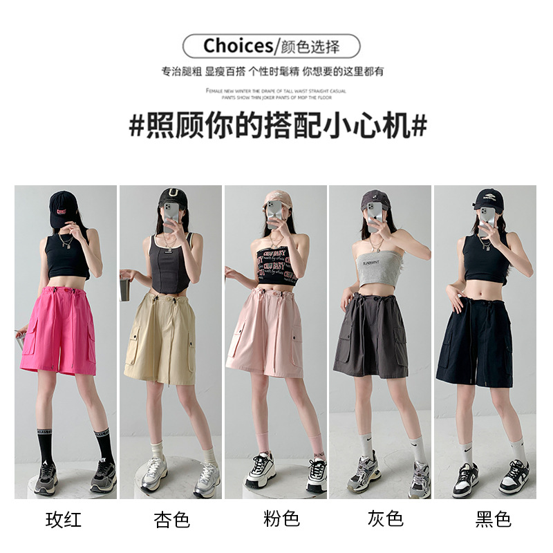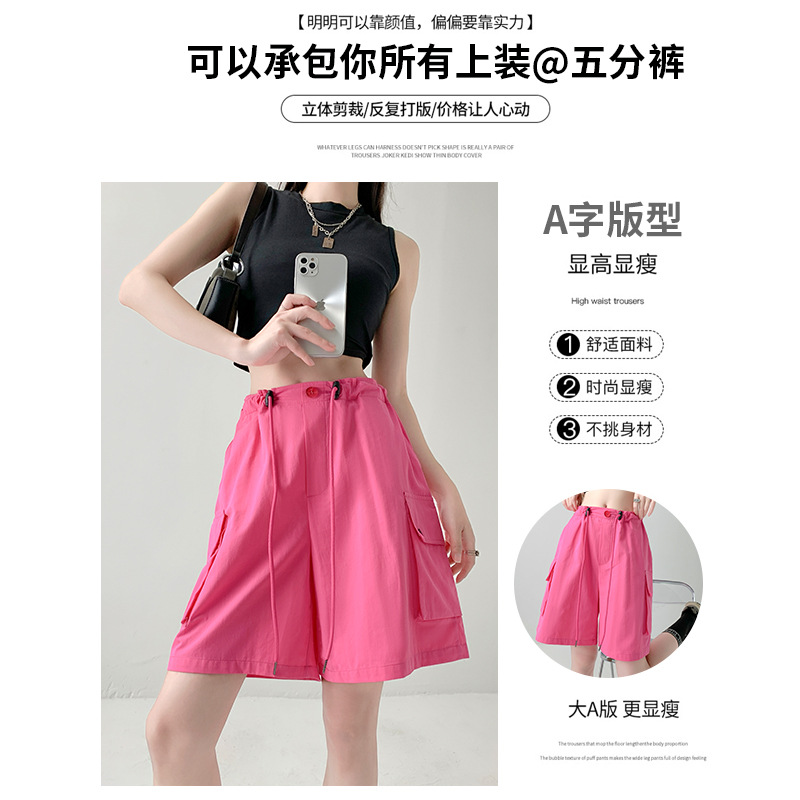纯棉工装短裤女夏季薄款高腰显瘦阔腿休闲中裤美式外穿运动五分裤