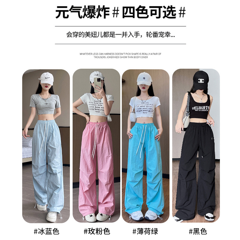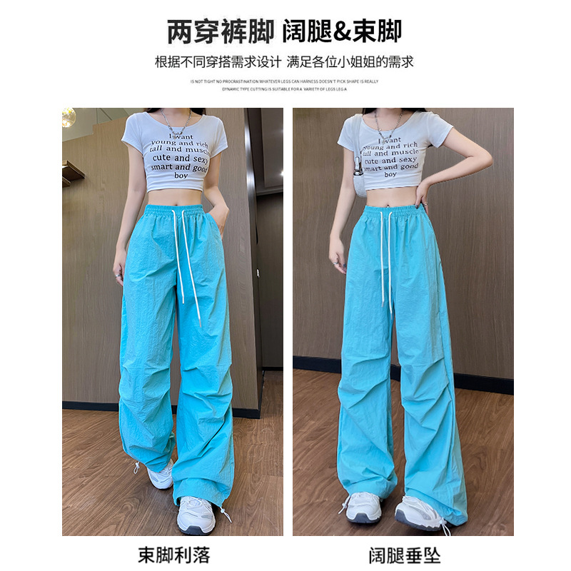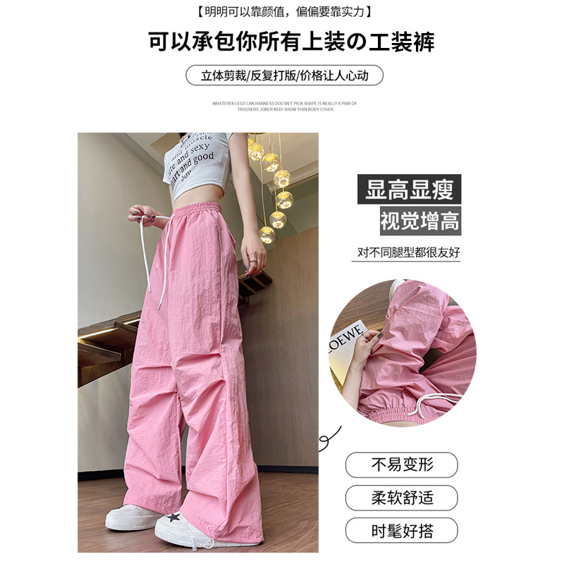 锦纶工装裤女装裤子夏季薄女24新款速干休闲阔腿裤直筒美式运动裤