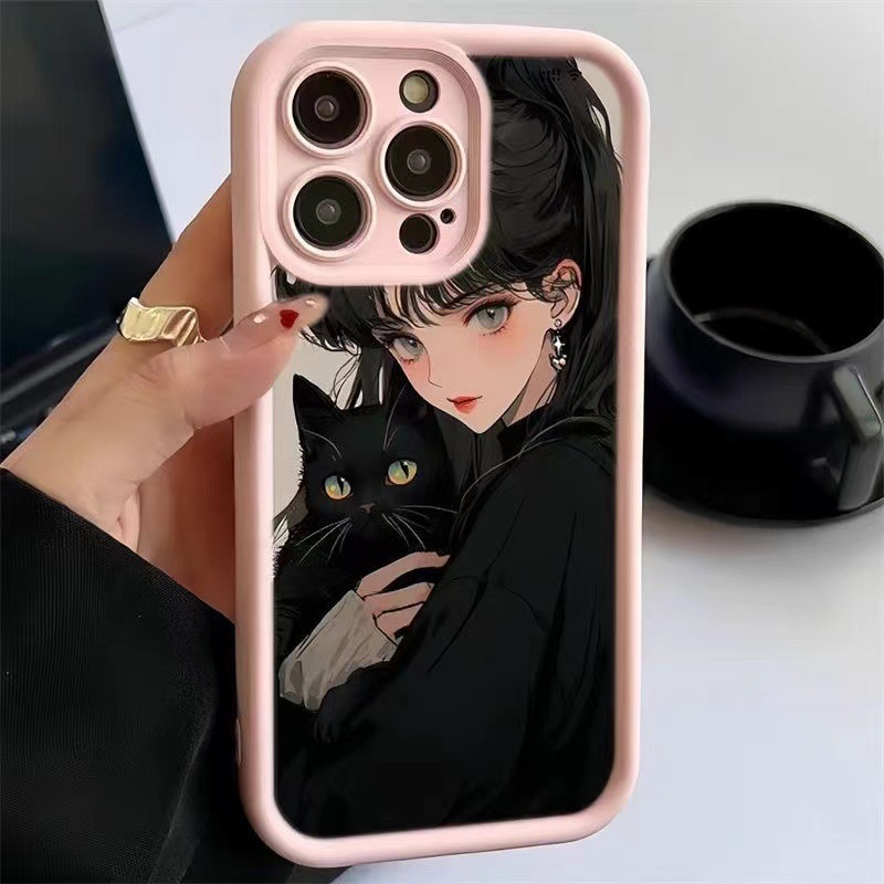 天使阶梯黑猫女孩适用于苹果15promax手机壳iPhone14少女13暗黑