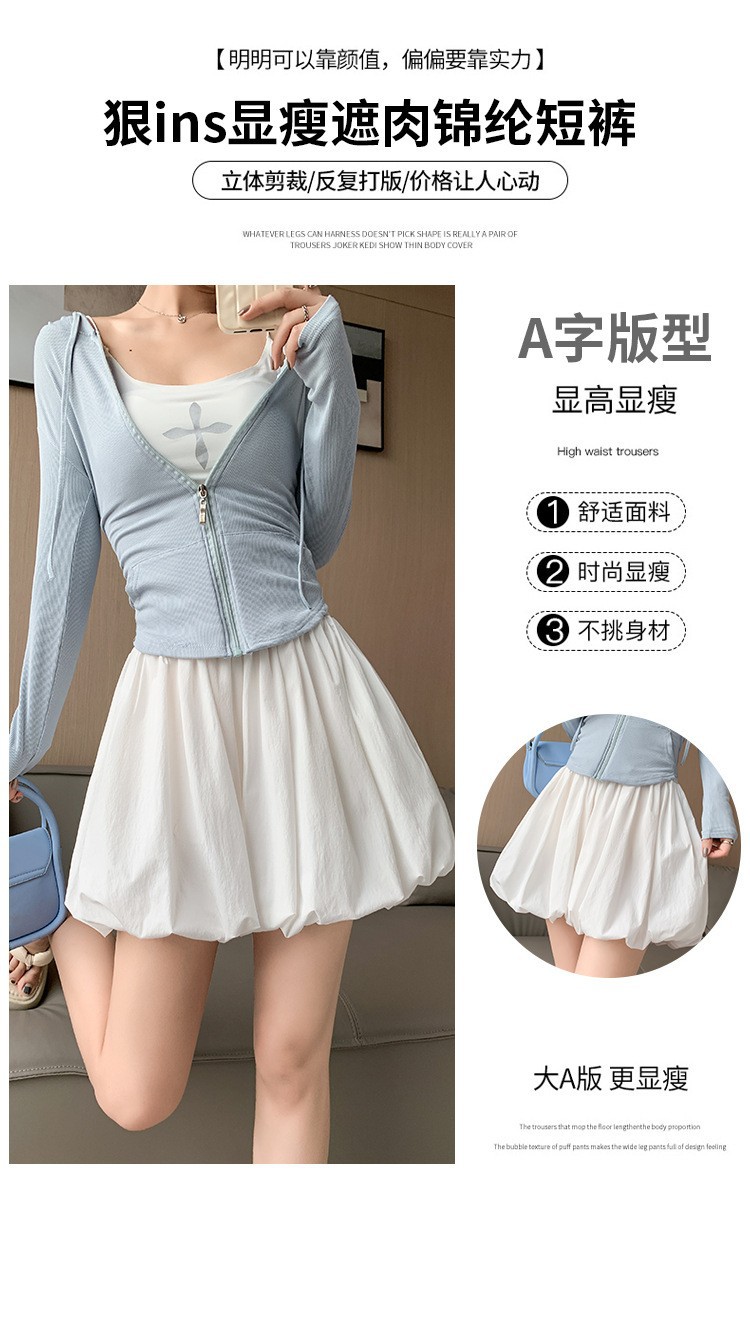 白色花苞短裤女夏季薄款新款高腰宽松阔腿裤显瘦蓬蓬女装裙裤
