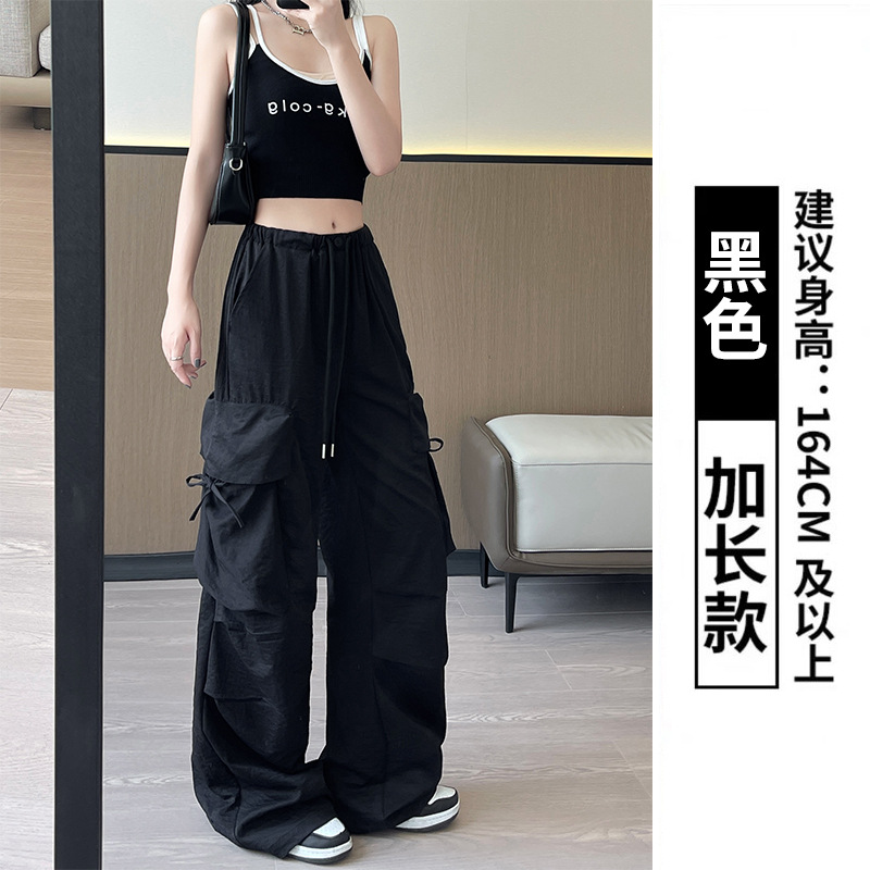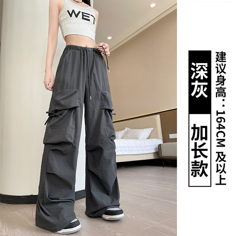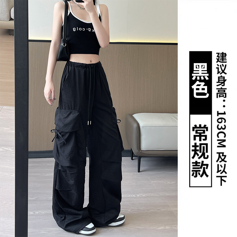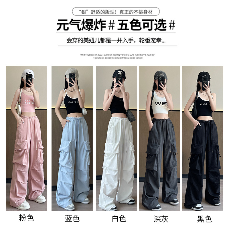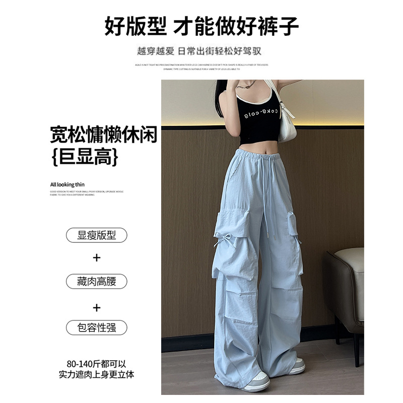 复古风工装裤女夏薄款新款显瘦休闲美式阔腿裤高腰女装运动裤