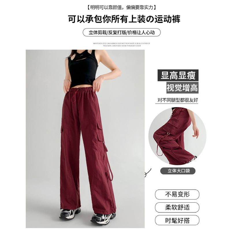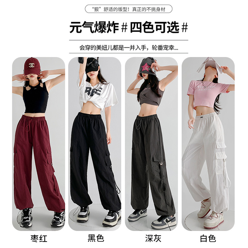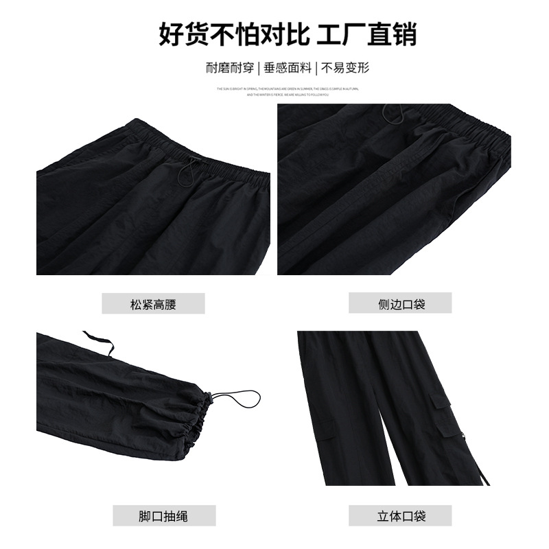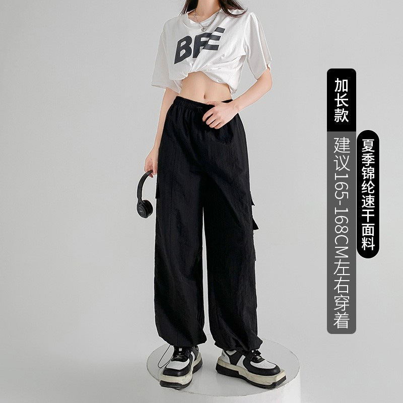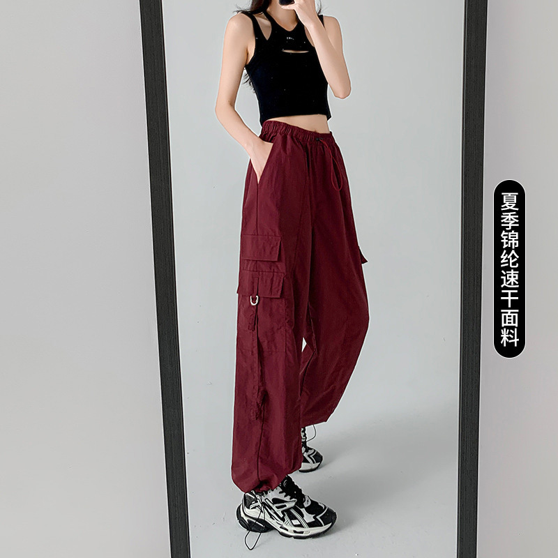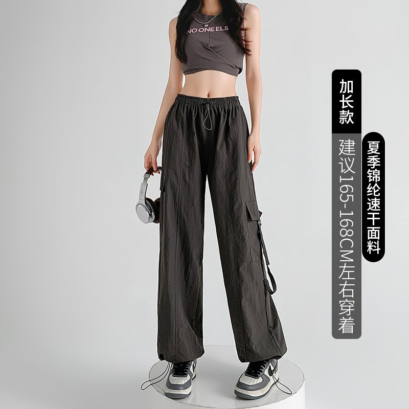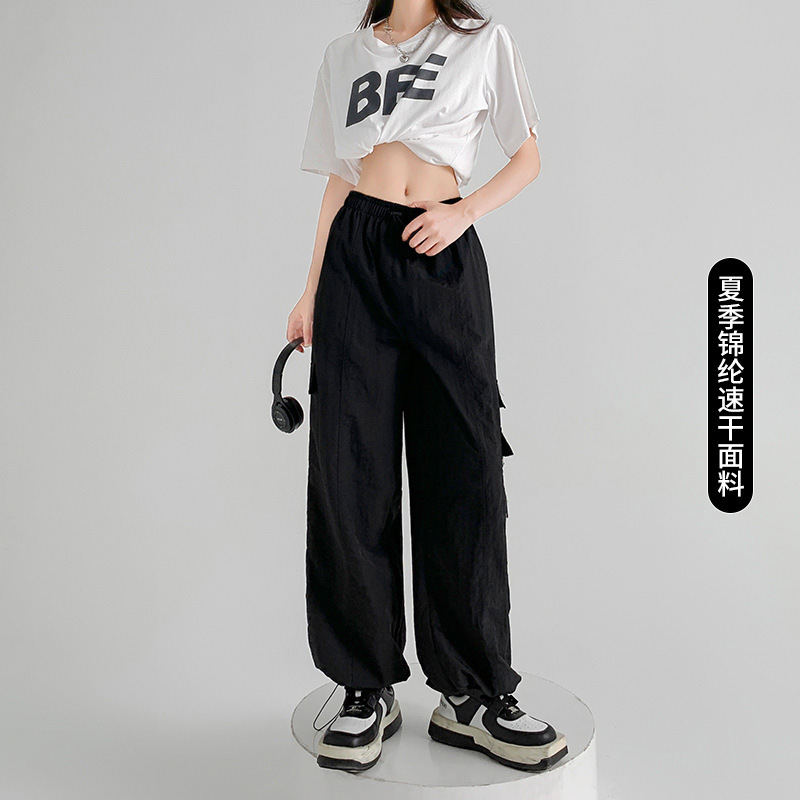 锦纶工装裤女装裤子女夏季新款高腰速干运动裤宽松休闲阔腿裤女裤