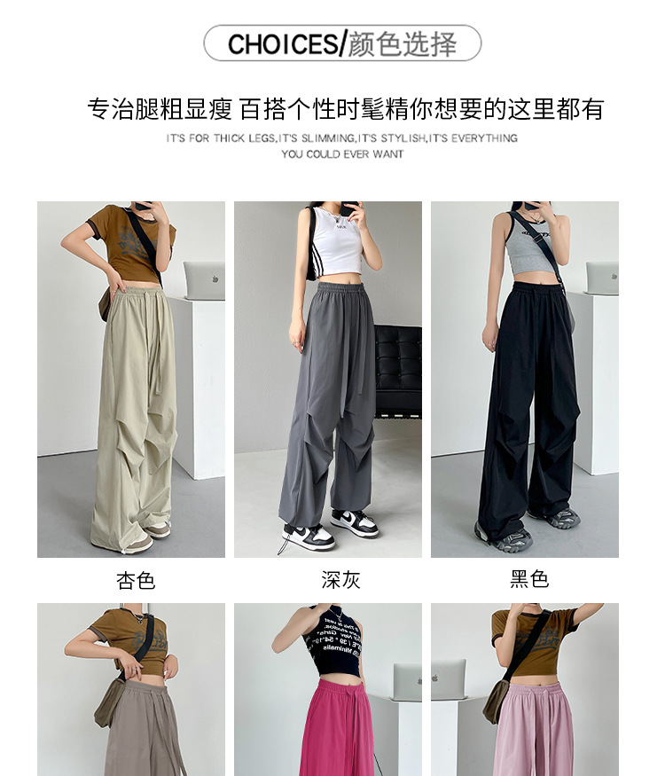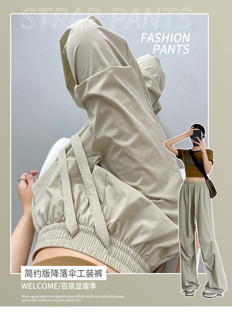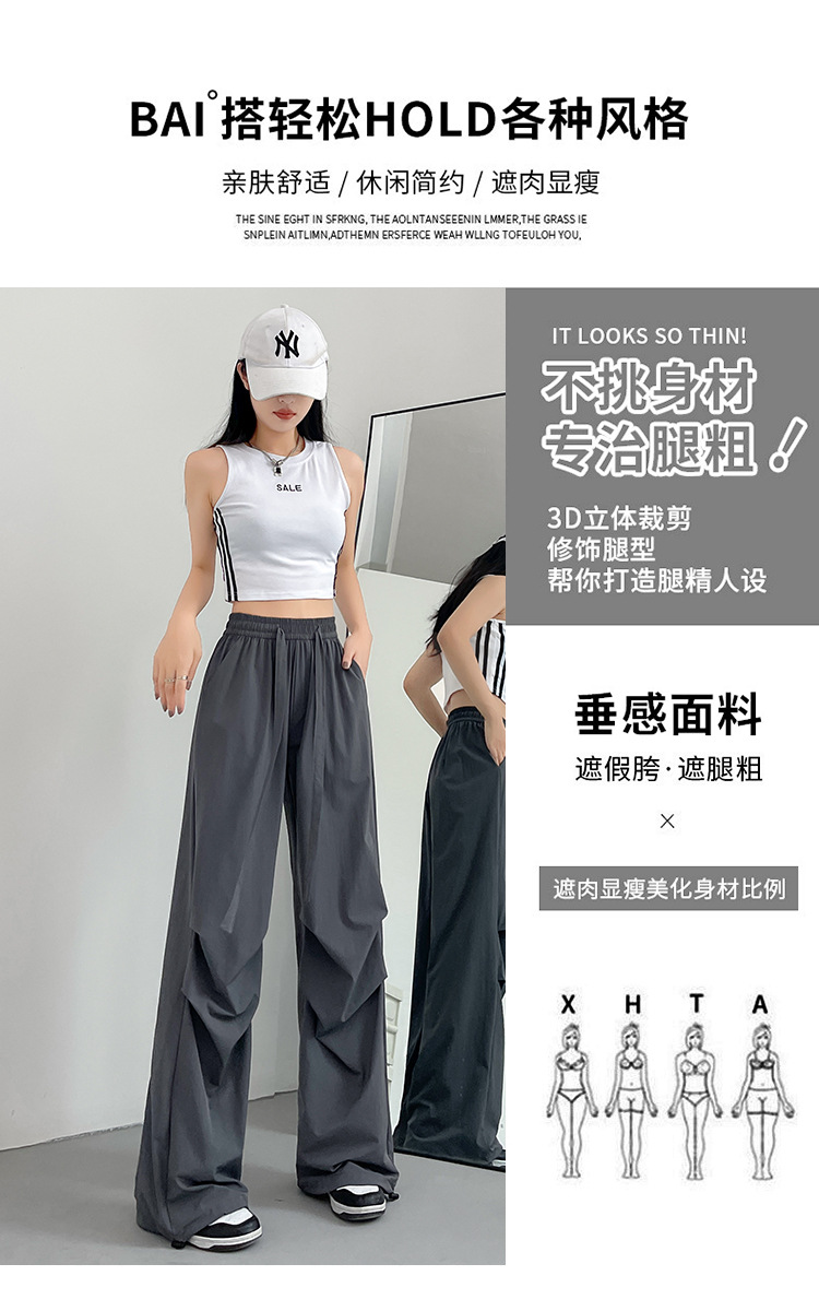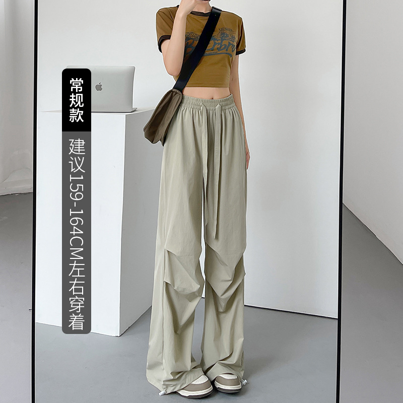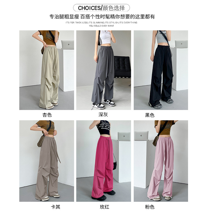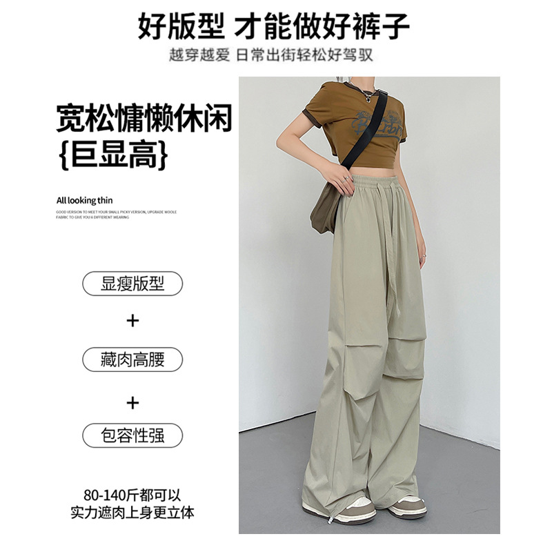 美式运动裤女装裤子女夏季薄款休闲降落伞裤阔腿高腰速干工装裤