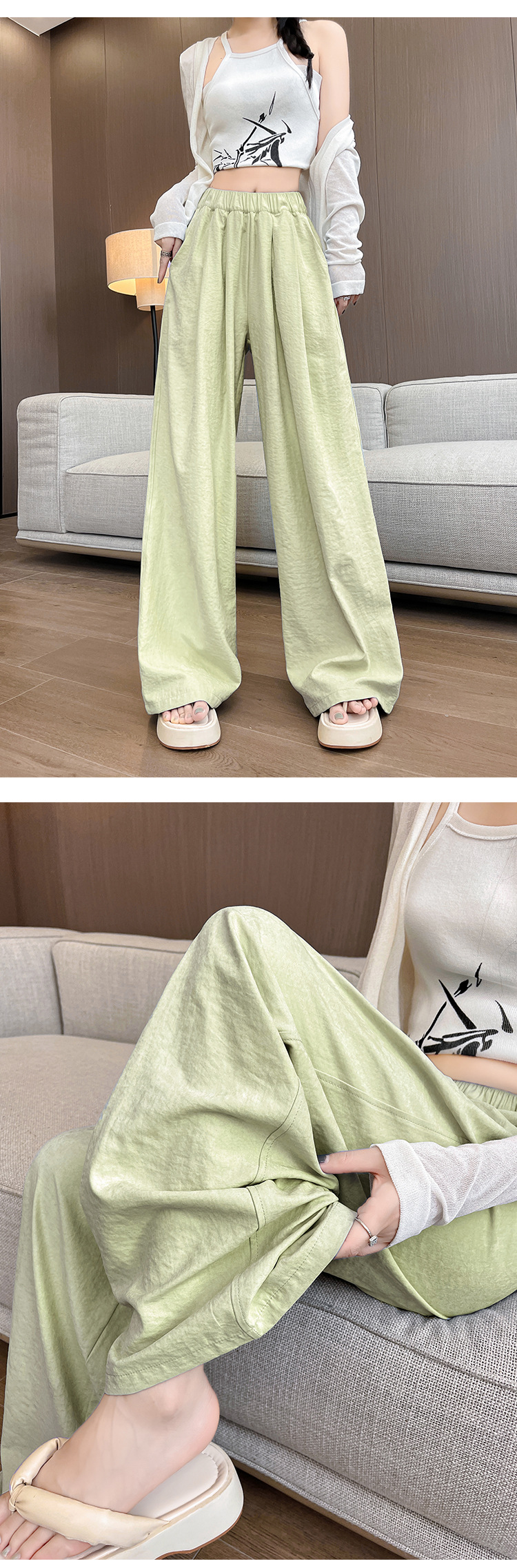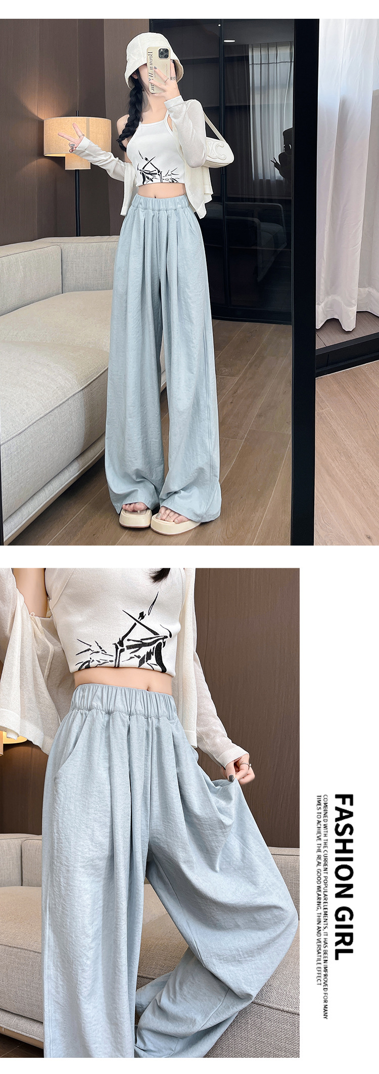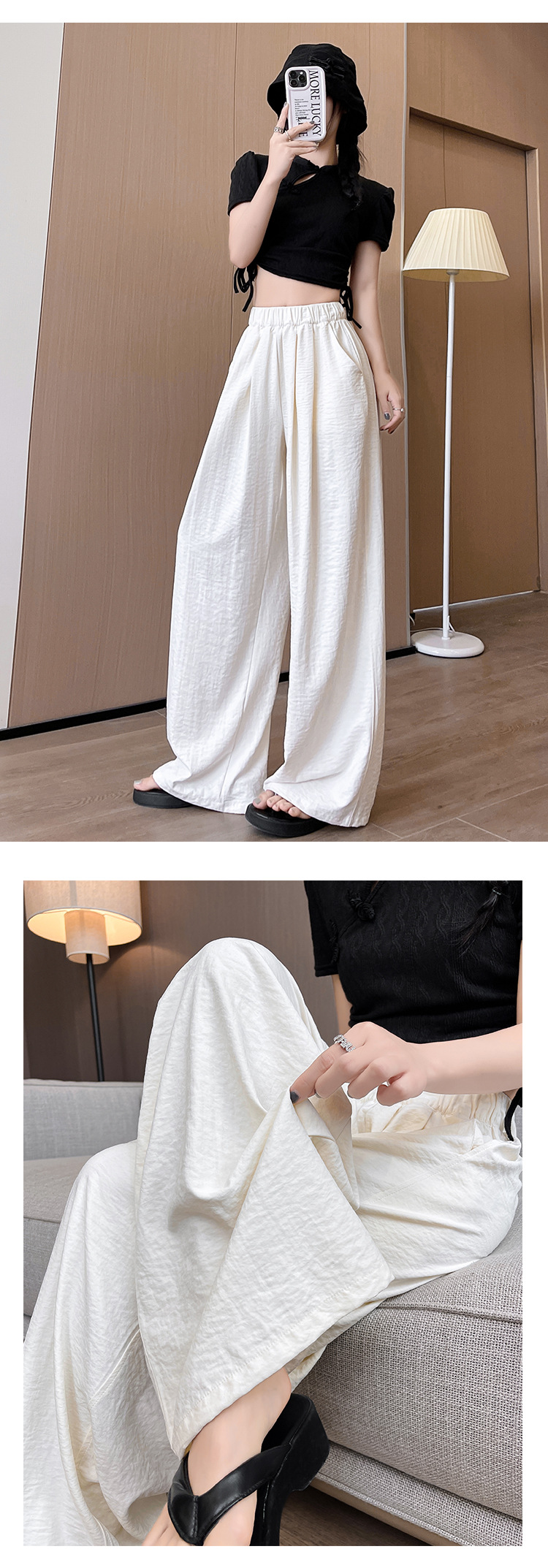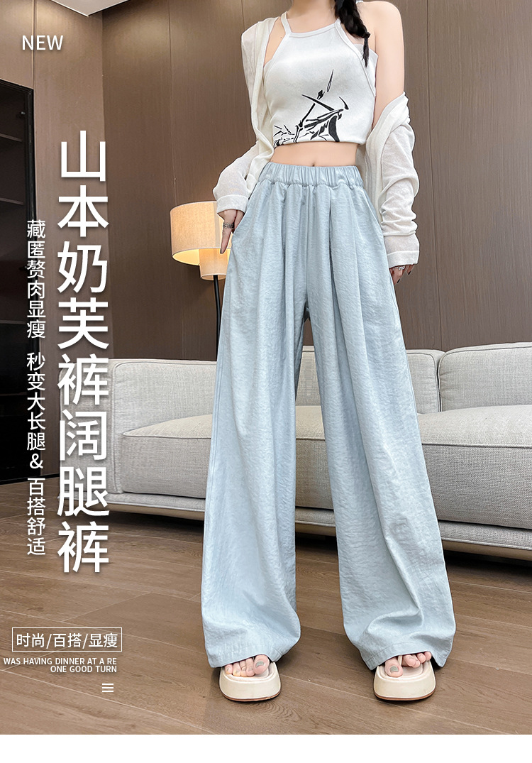 白色冰丝阔腿裤女裤子夏季薄款垂感肌理感奶芙裤休闲小个子山本裤