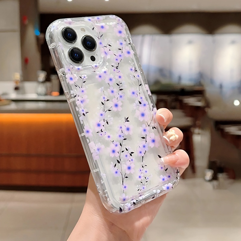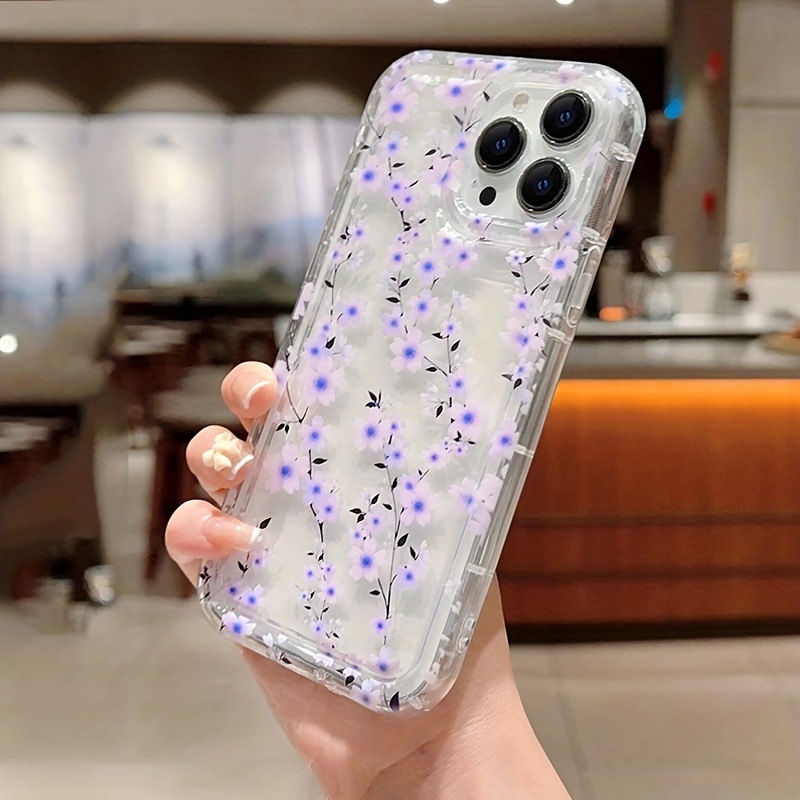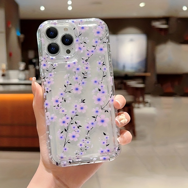 透明紫花枝苹果15手机壳iphone14promax软胶13/12/11全包防摔x/xr