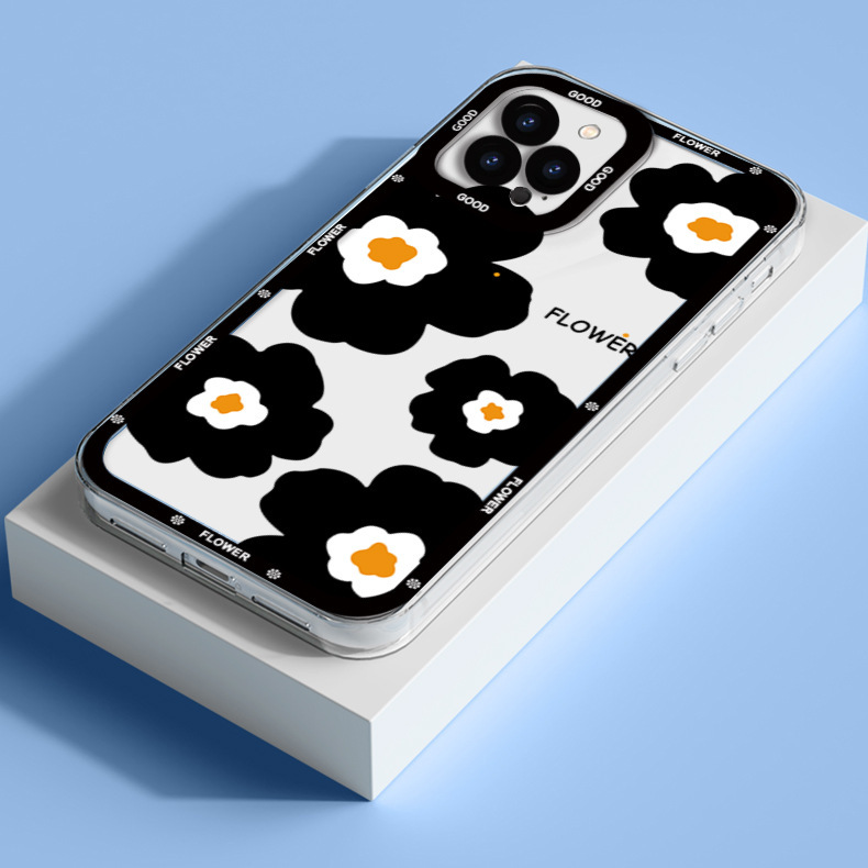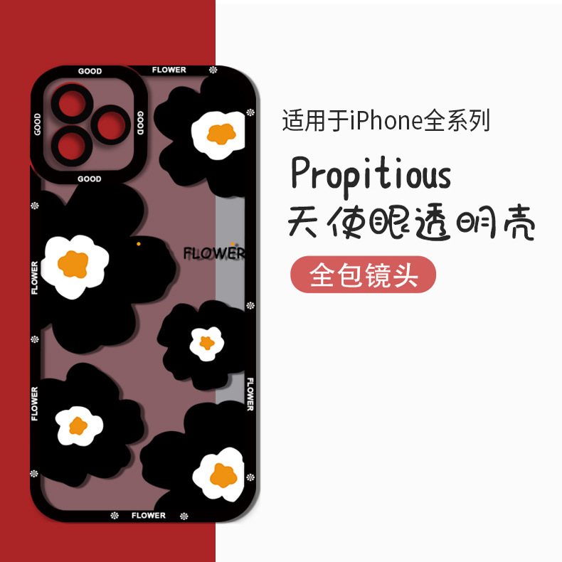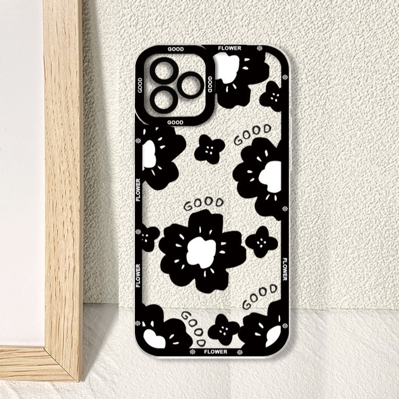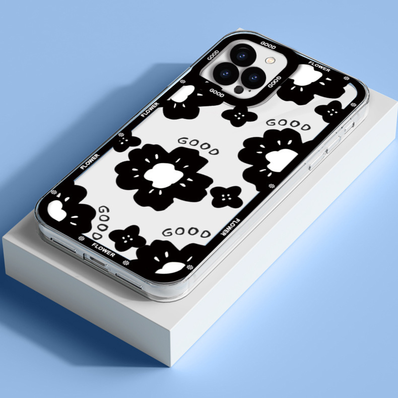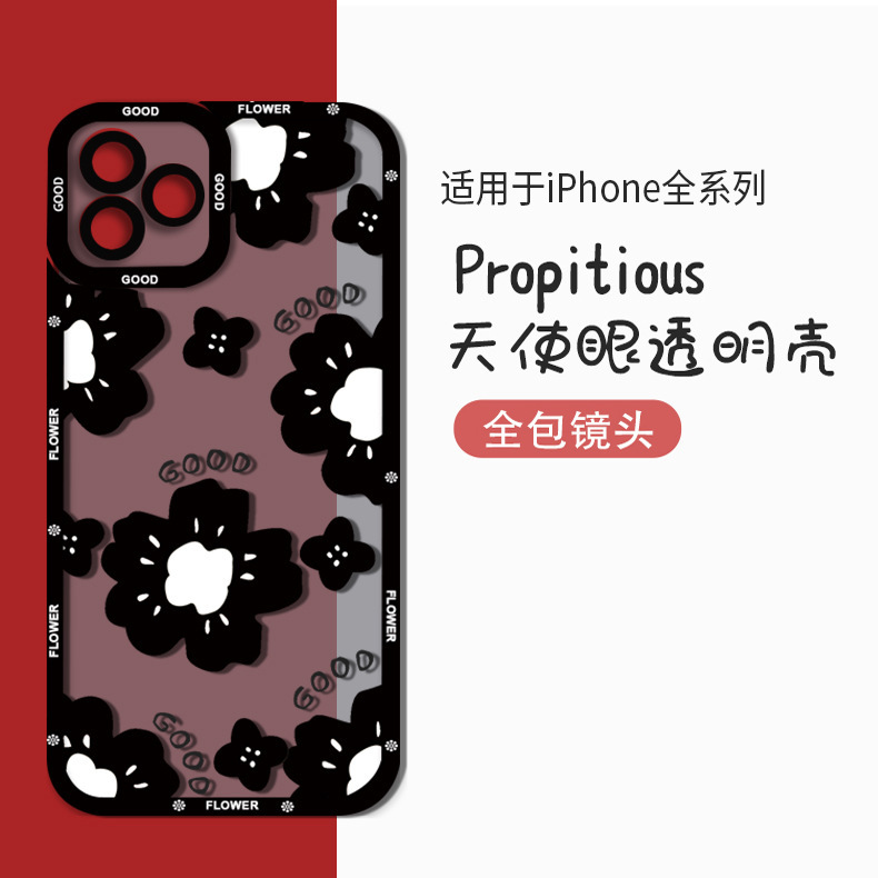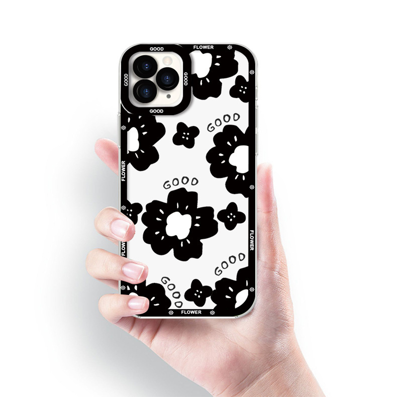 爆款ins黑色花朵透明手机壳苹果15软壳ip11小众13pro