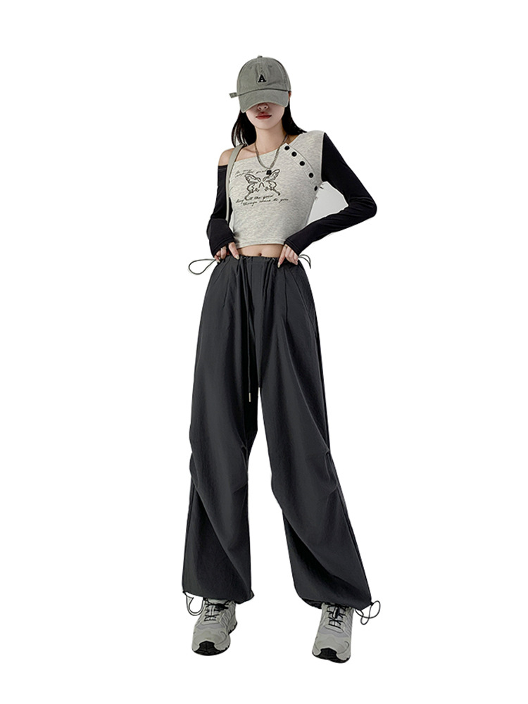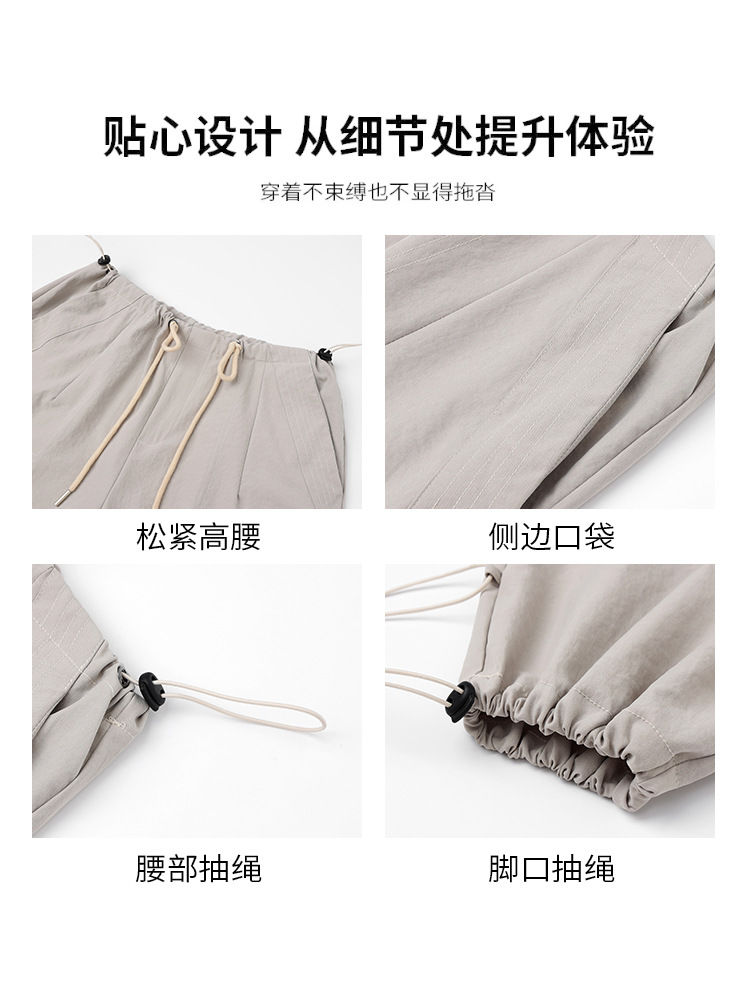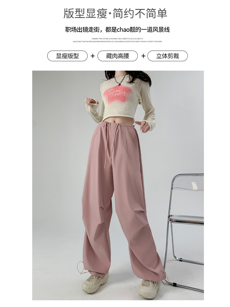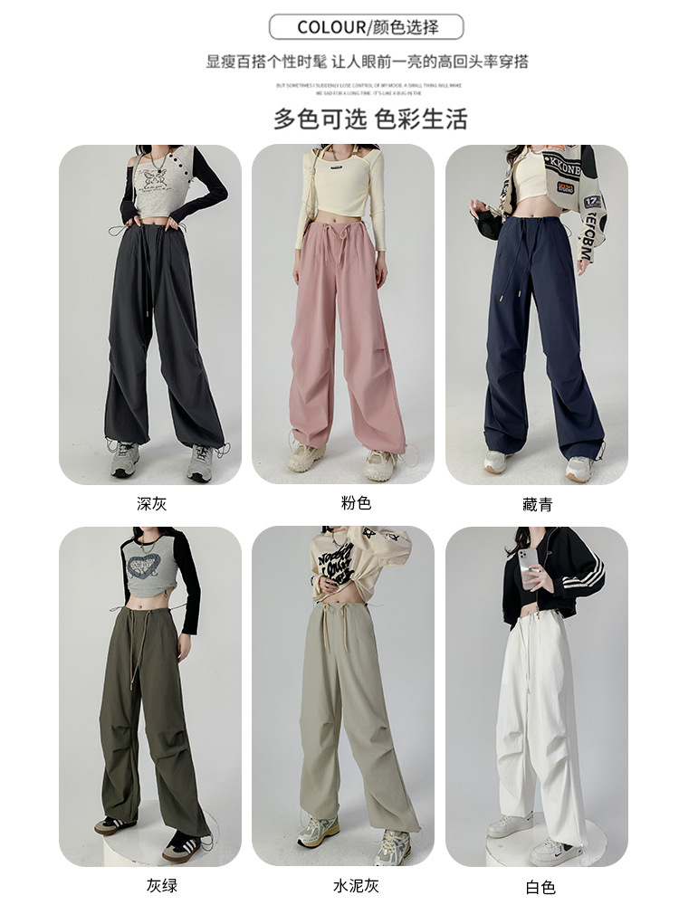 复古风工装裤女装裤子夏季薄女美式高腰阔腿裤卫裤直筒速干运动裤