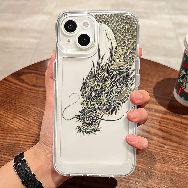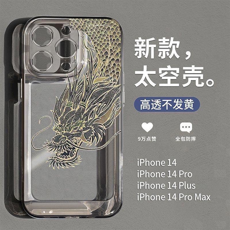 国潮中国龙苹果15手机壳iphone14promax透明软胶13/12/11全包防摔