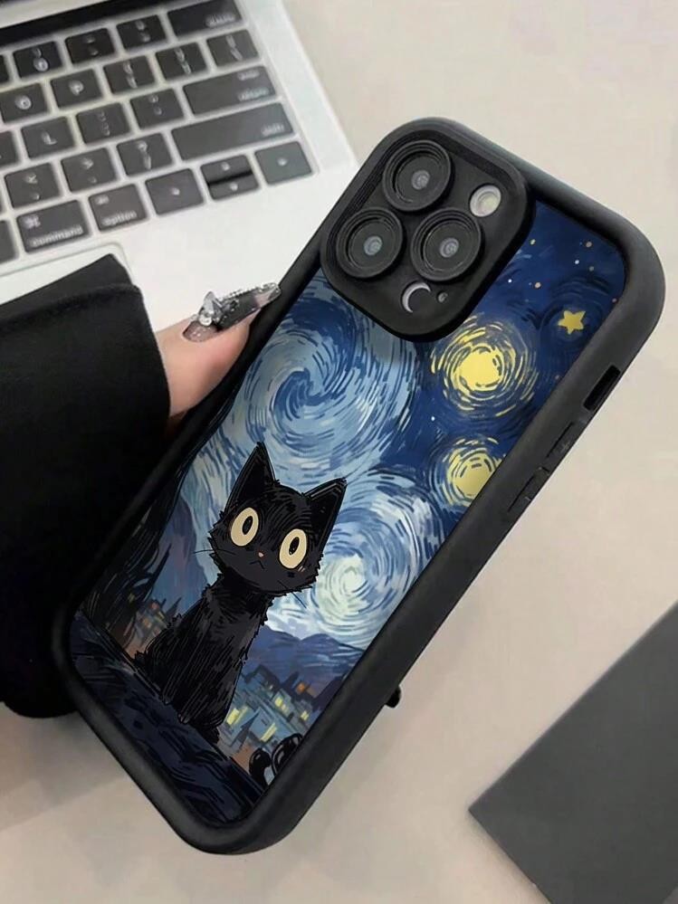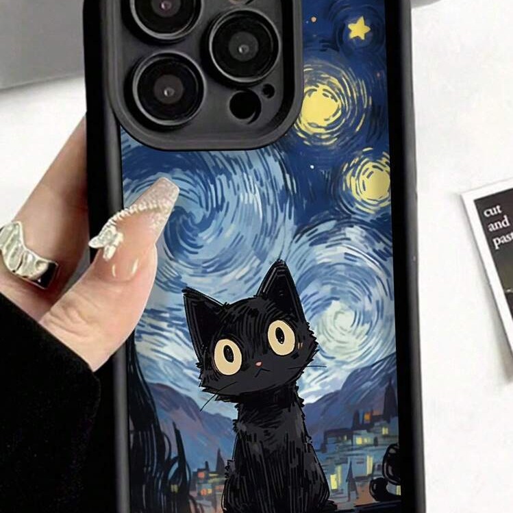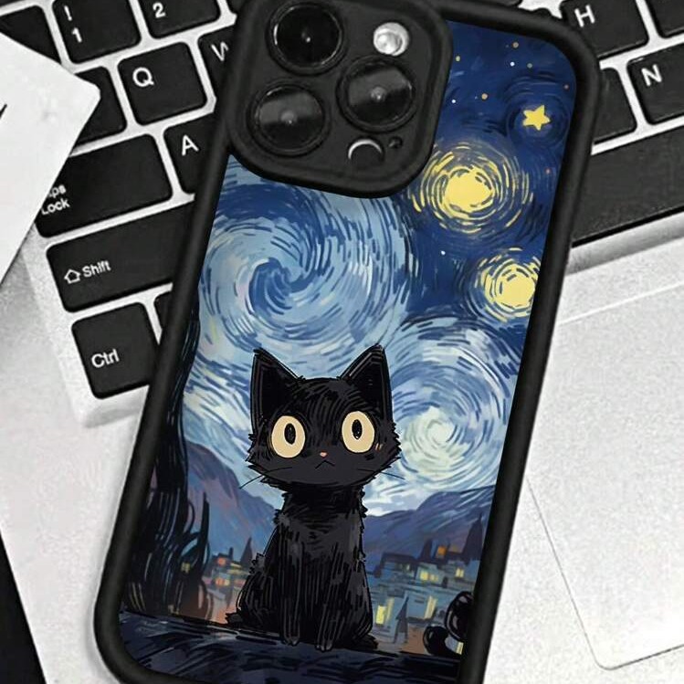 星空黑猫适用苹果14手机壳13/12/11天眼阶梯15promax防摔7/8p软壳
