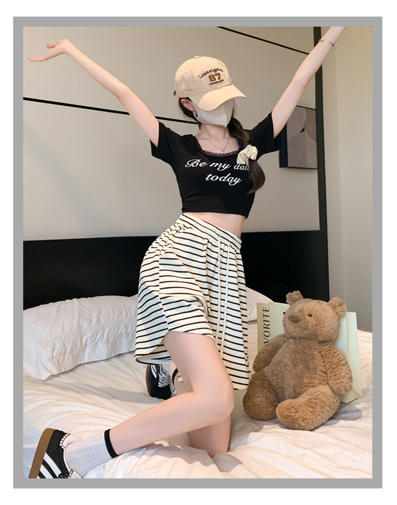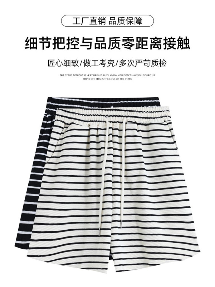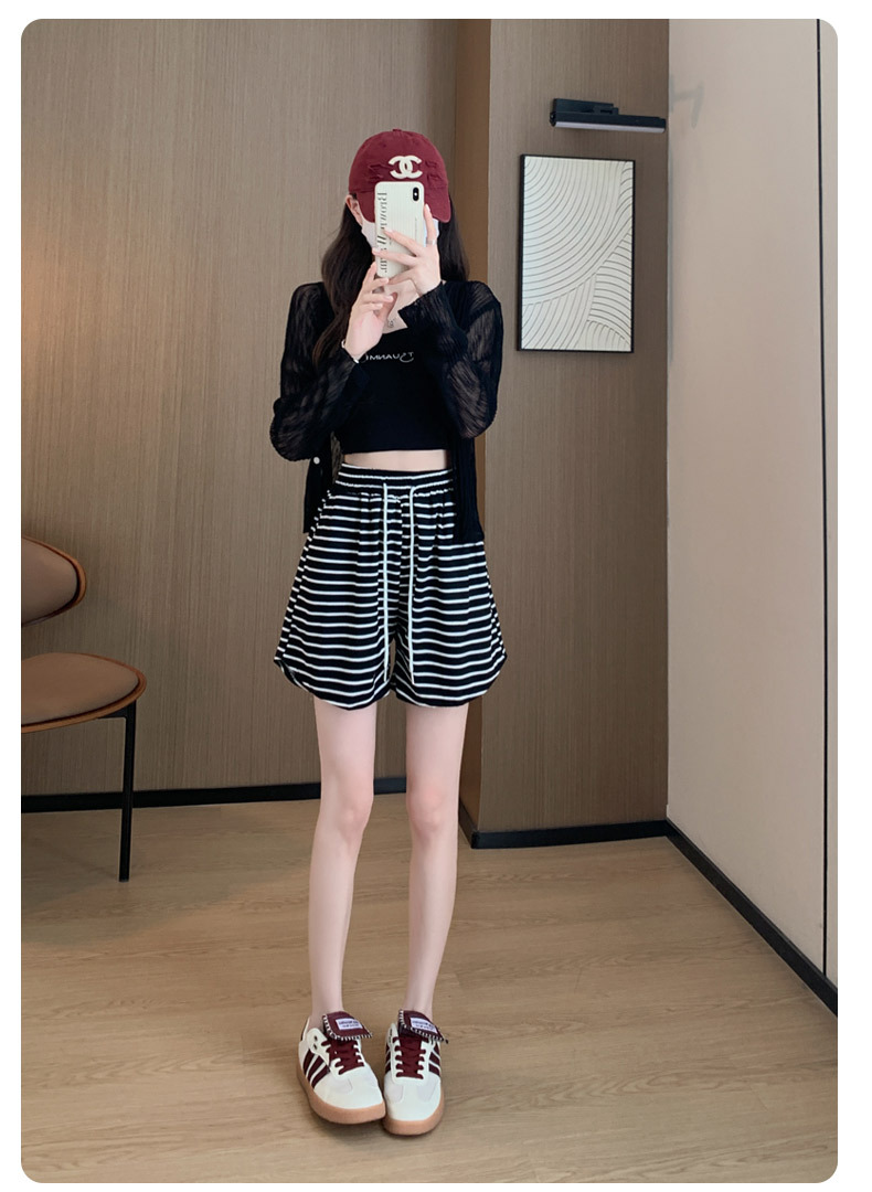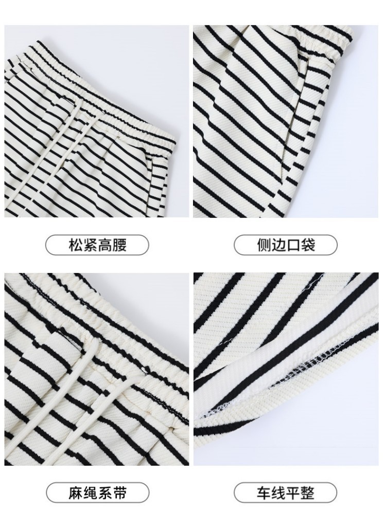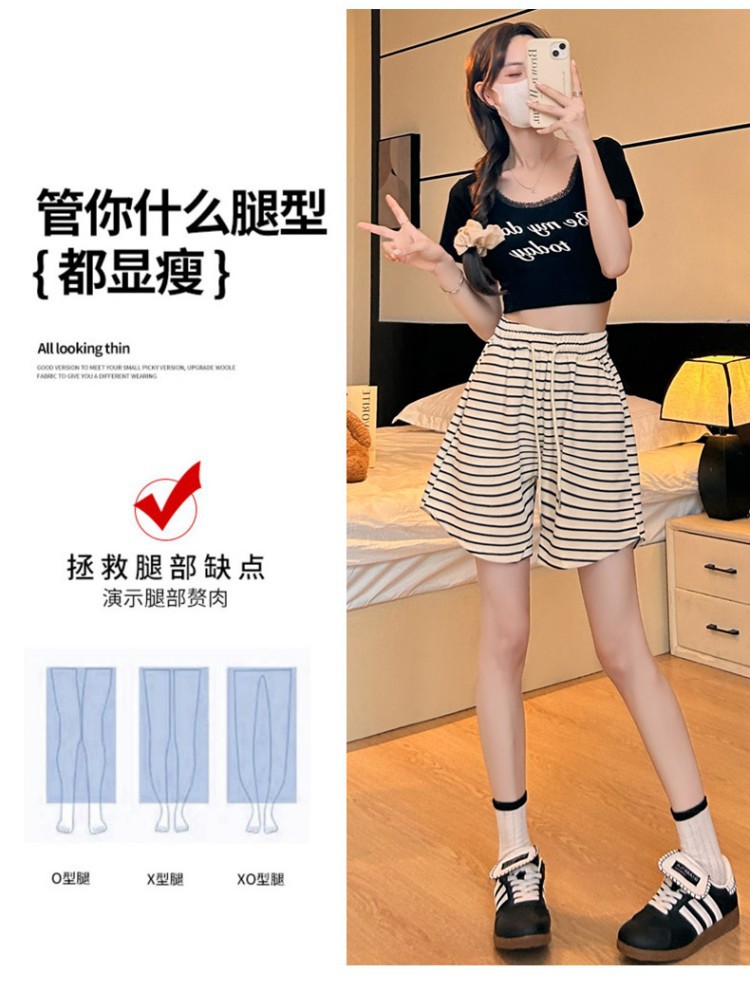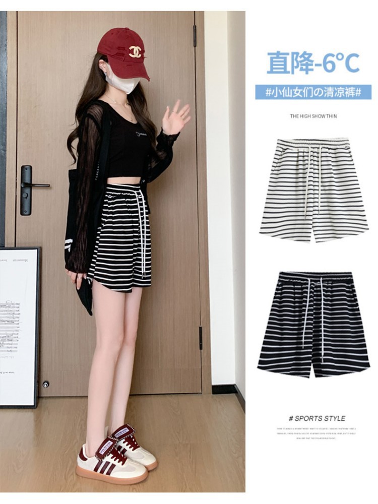 条纹短裤女夏季薄款新款韩版阔腿裤高腰显瘦百搭五分运动裤子