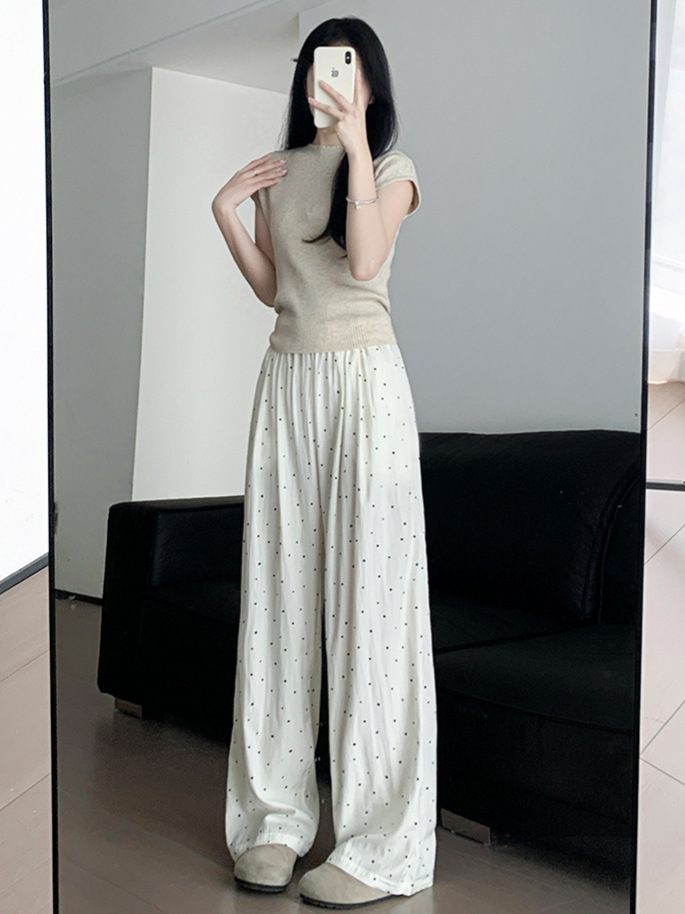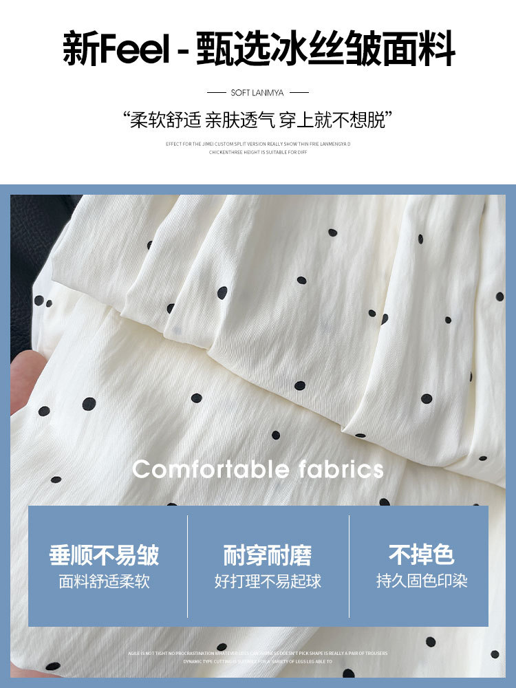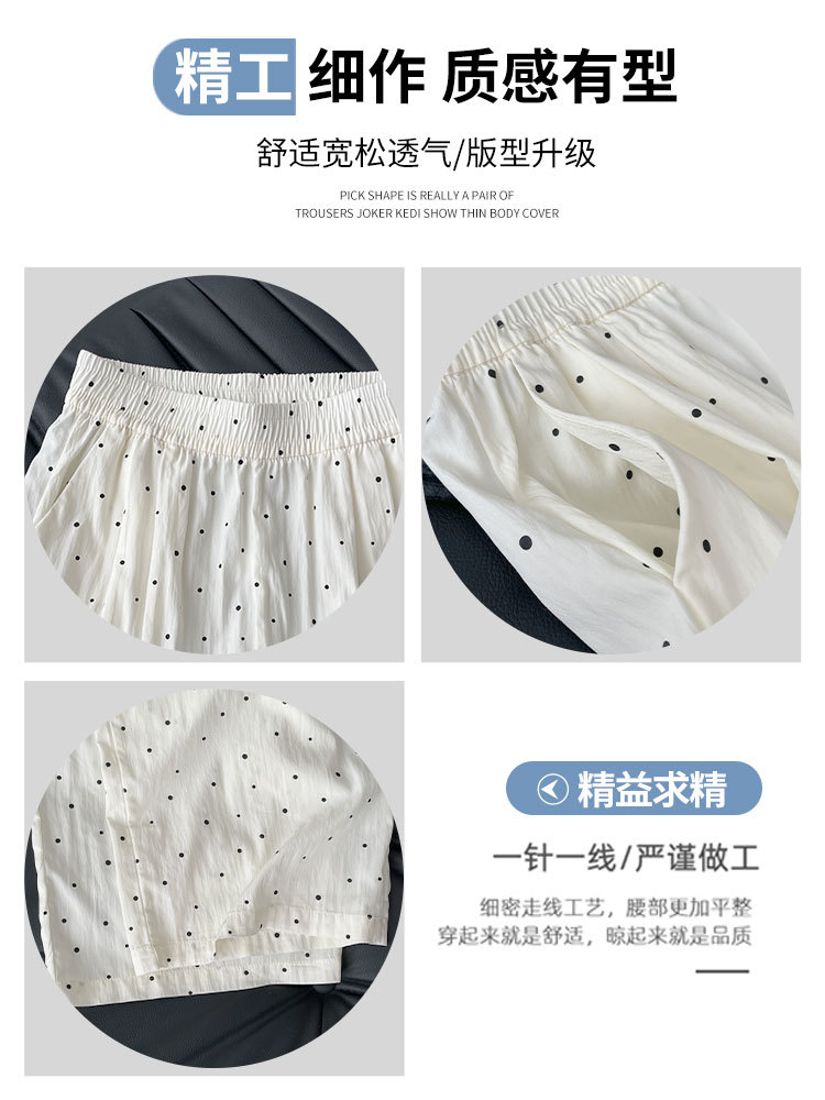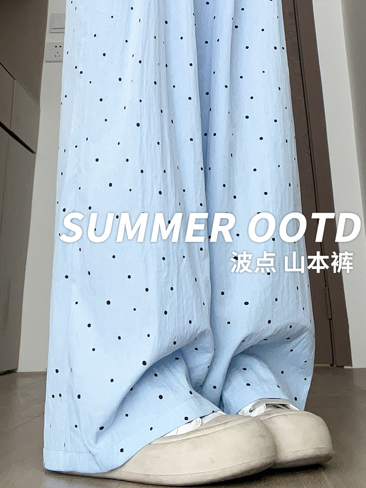 波点冰丝山本裤女夏季薄款新款休闲小个子遛弯垂感白色阔腿裤