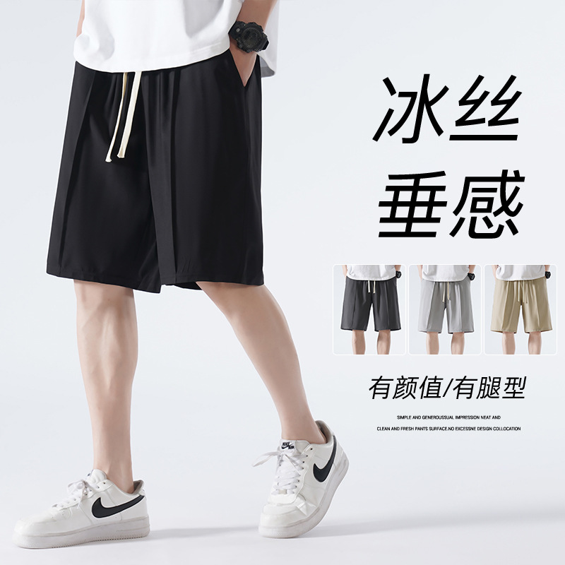 冰丝短裤男夏季薄款宽松休闲裤子男潮流运动沙滩裤五分中裤跑步款