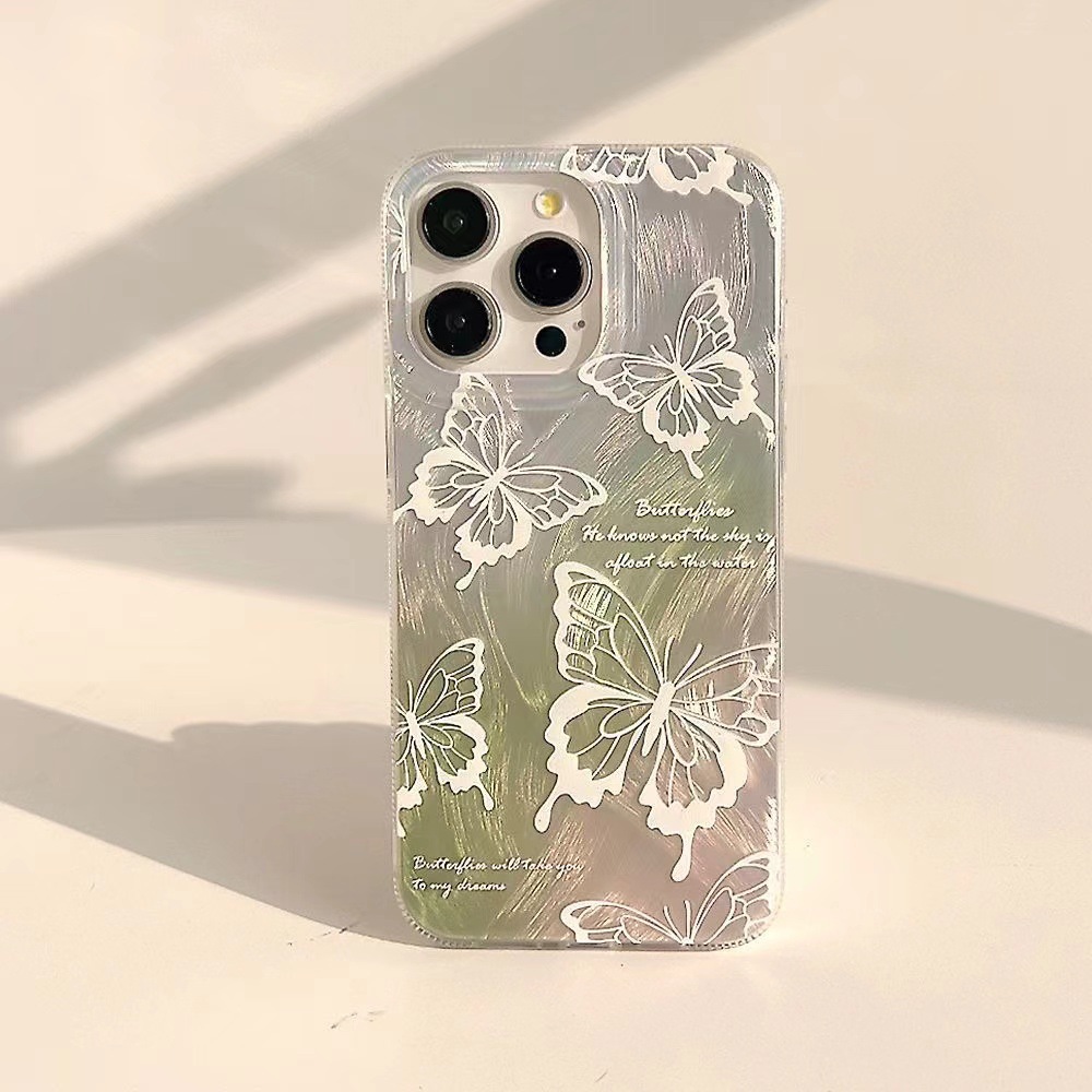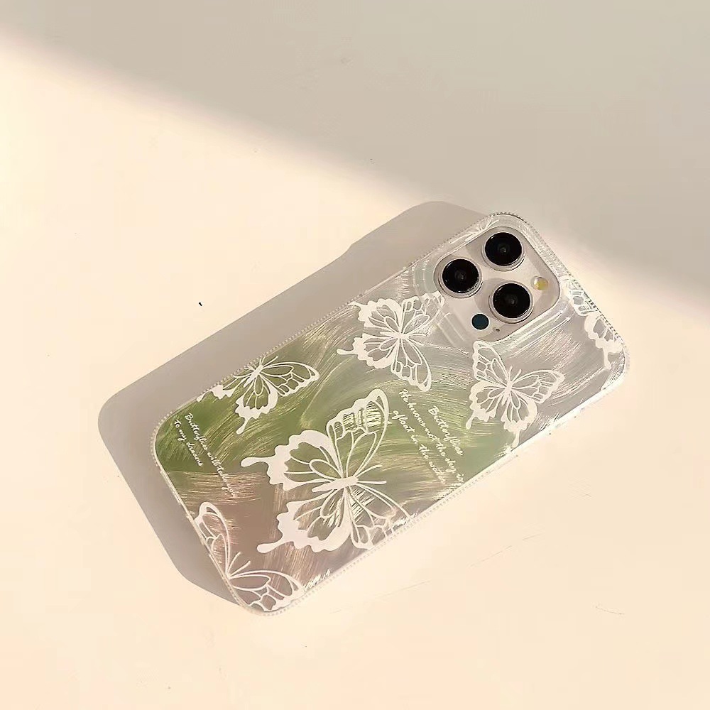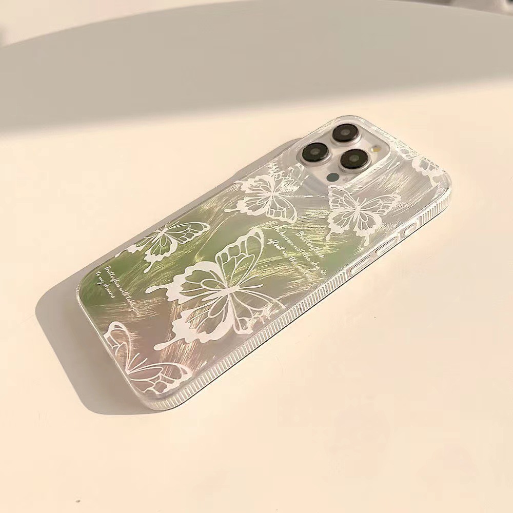 羽纱绿色晕染蝴蝶适用苹果15promax手机壳14小清新13pro艺术12硬7
